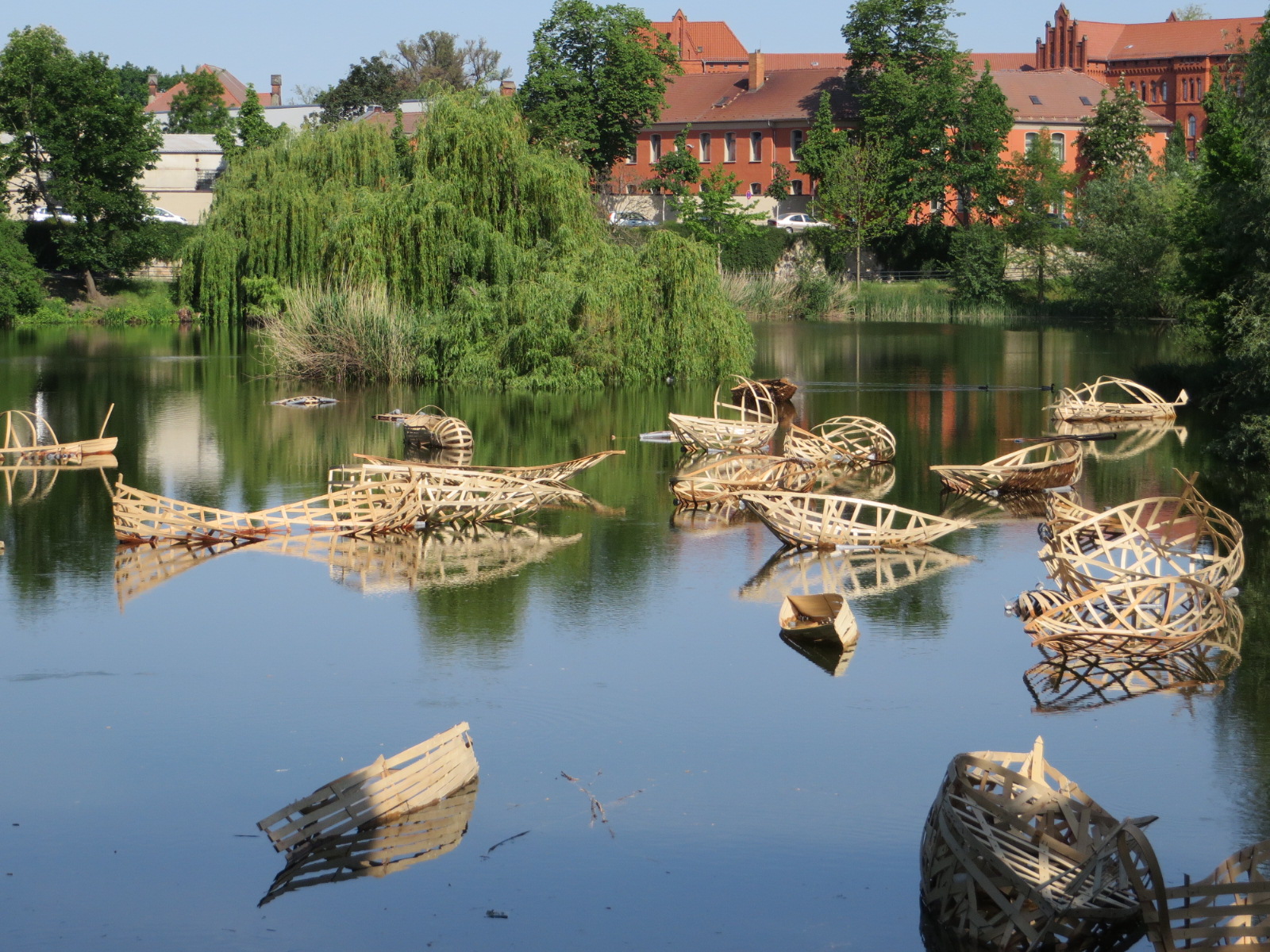 Die Flüchtlingsboote machen auf das Flüchtlingsdrama im Mittelmeer sowie auf die aktuelle Debatten über Asyl und Migration aufmerksam.