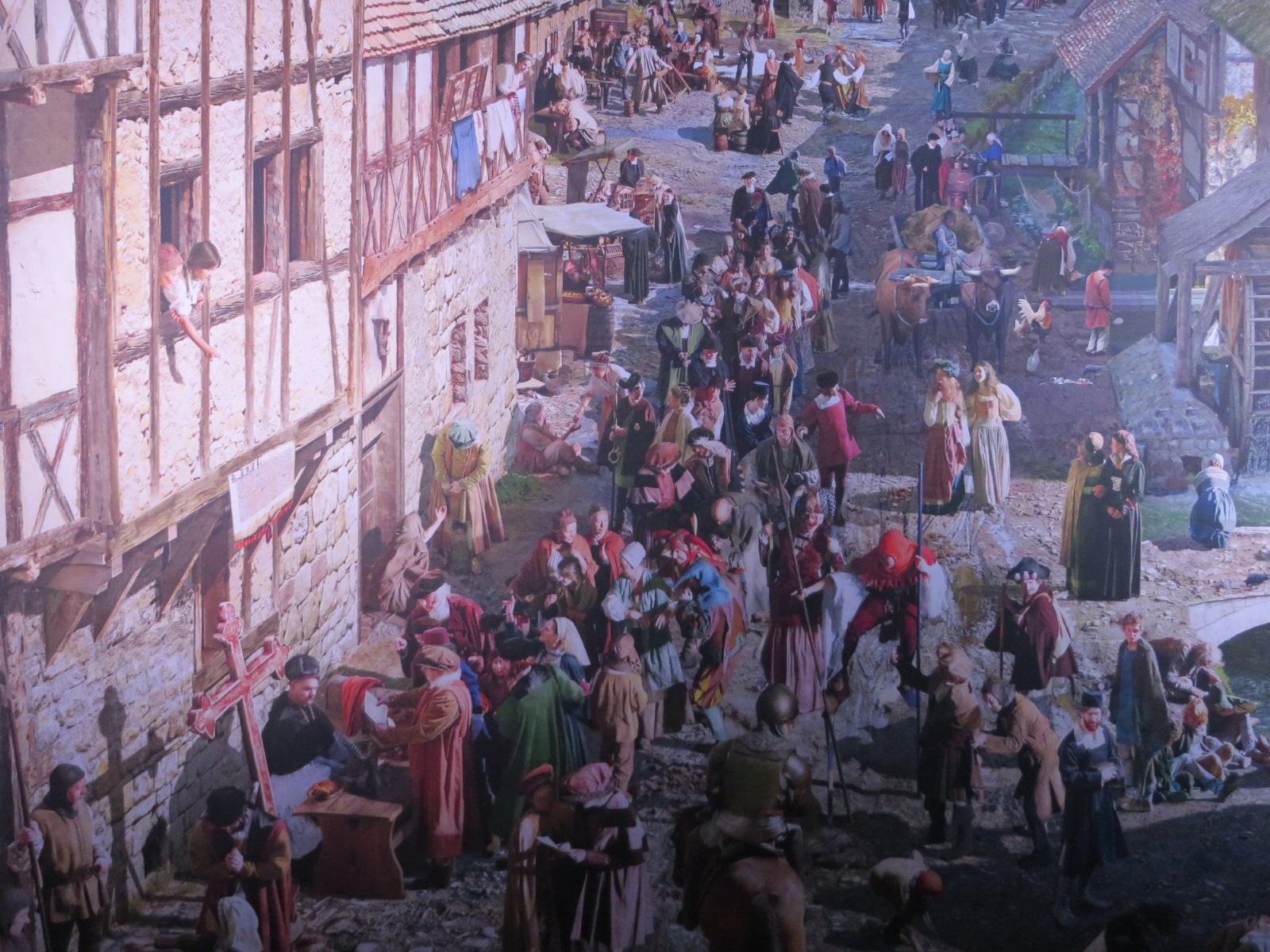 Im Torraum 3 steht auch das 360 Grad Panorama, das Wittenberg im Jahr 1517 darstellt. Hier sieht man wie Tetzel Ablassbriefe verkauft.