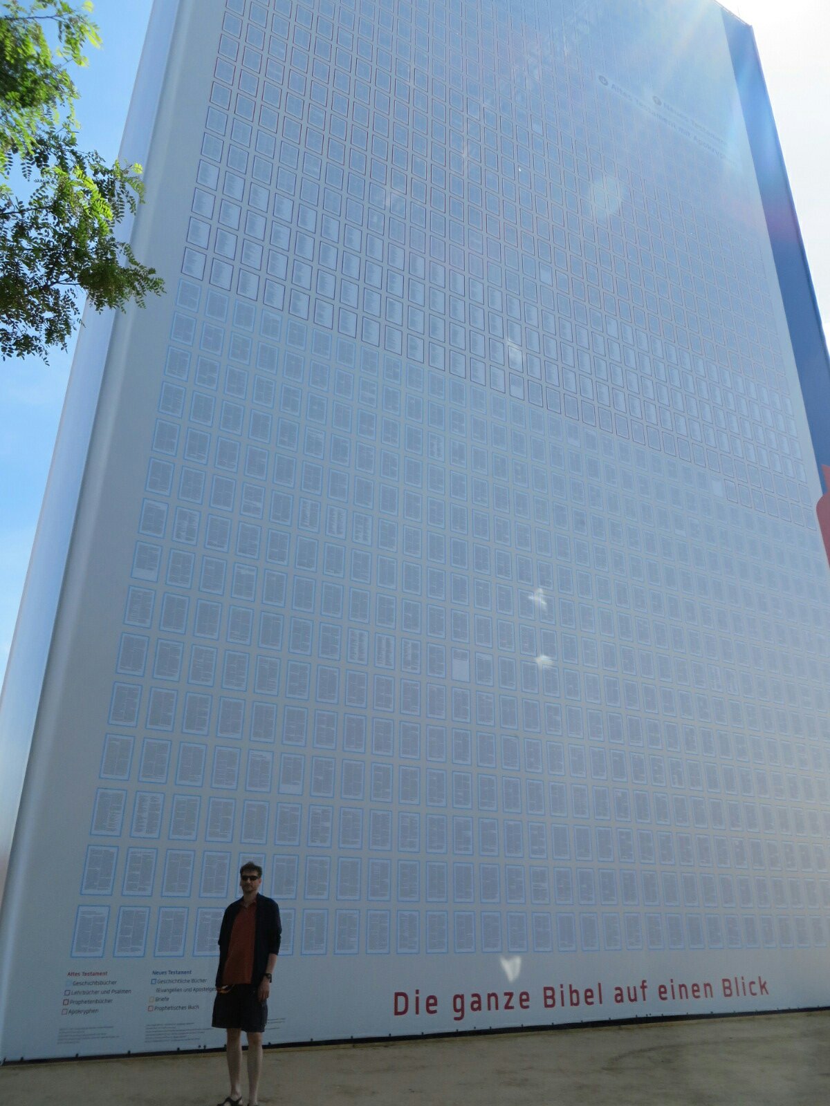 Auf der Rückseite ist die komplette Bibel in einzelnen Seiten gedruckt.