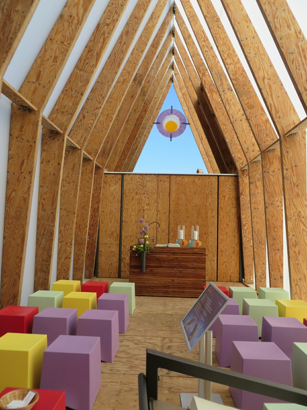 Hier stand u.a. die Lichtkirche. Eine transportable Kirche, die immer wieder woanders aufgebaut werden kann und nachts bunt leuchtet. Ein Pavillon informierte über die Probleme der Globalisierung.