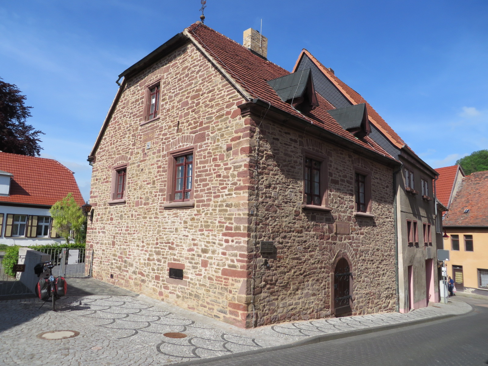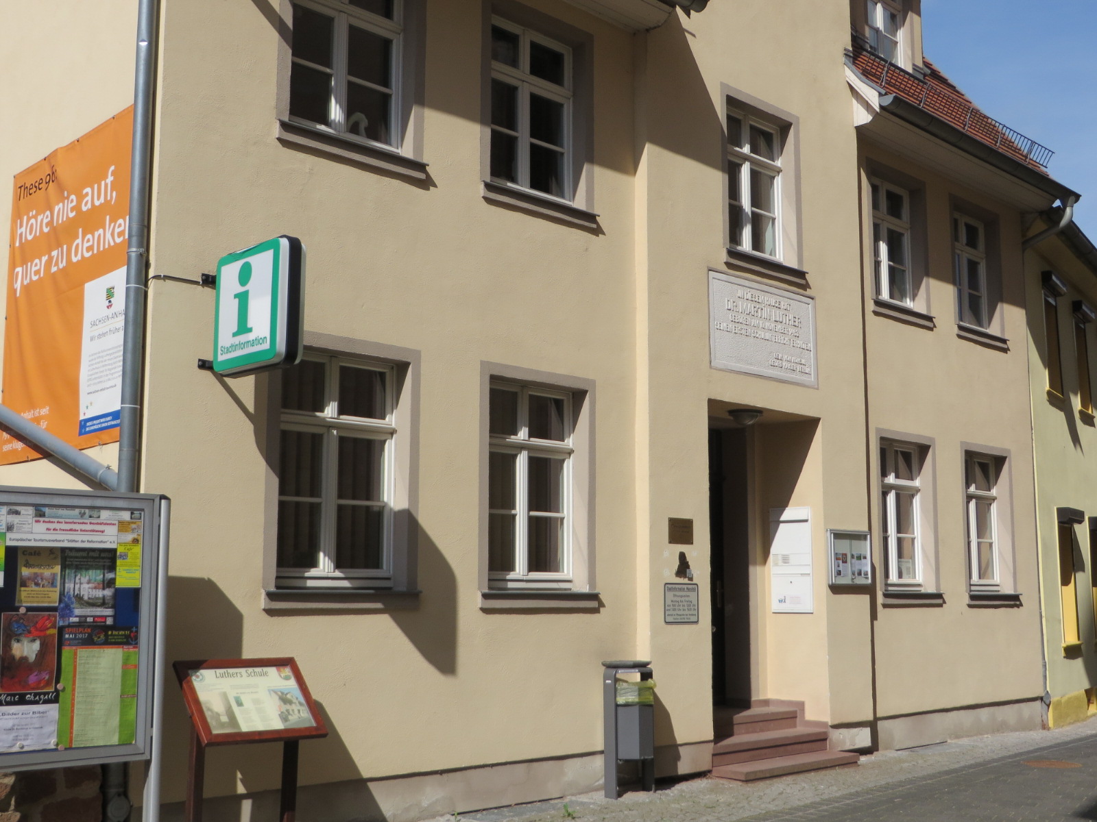 Hier stand die Schule, in der Martin Lesen, Rechnen, Singen und Latein lernte. Sie wurde im 30-jährigen Krieg zerstört, aber wieder aufgebaut.