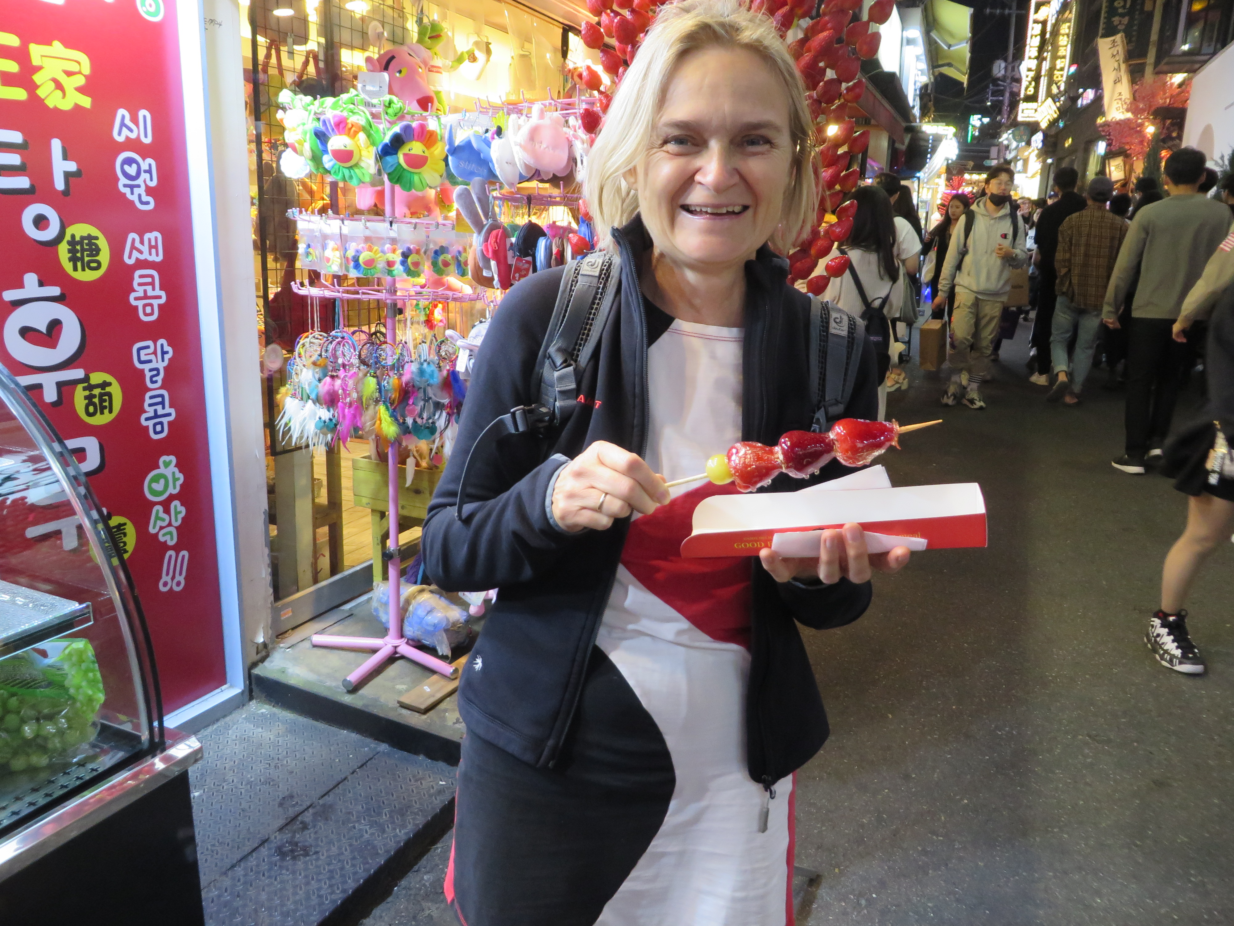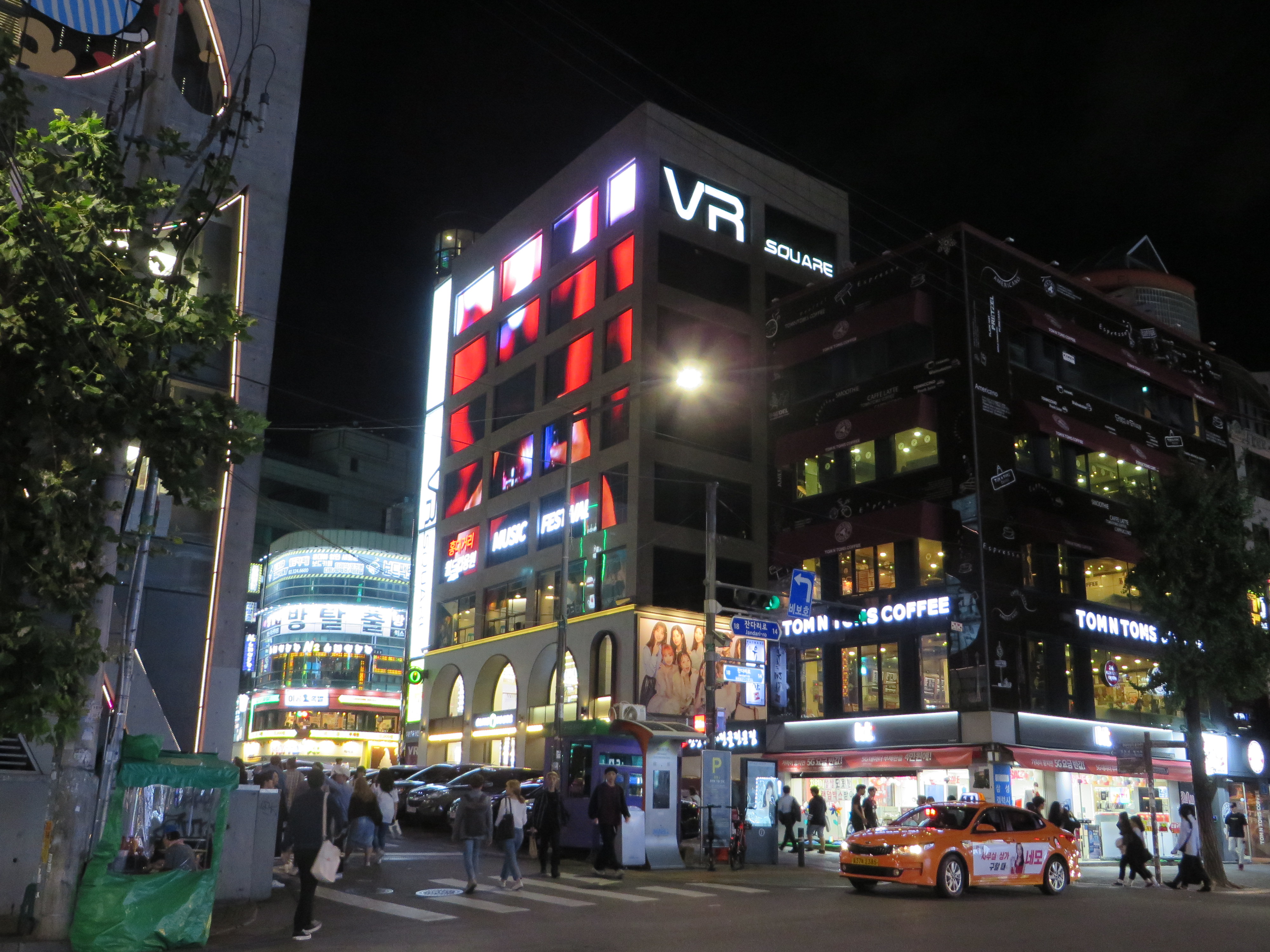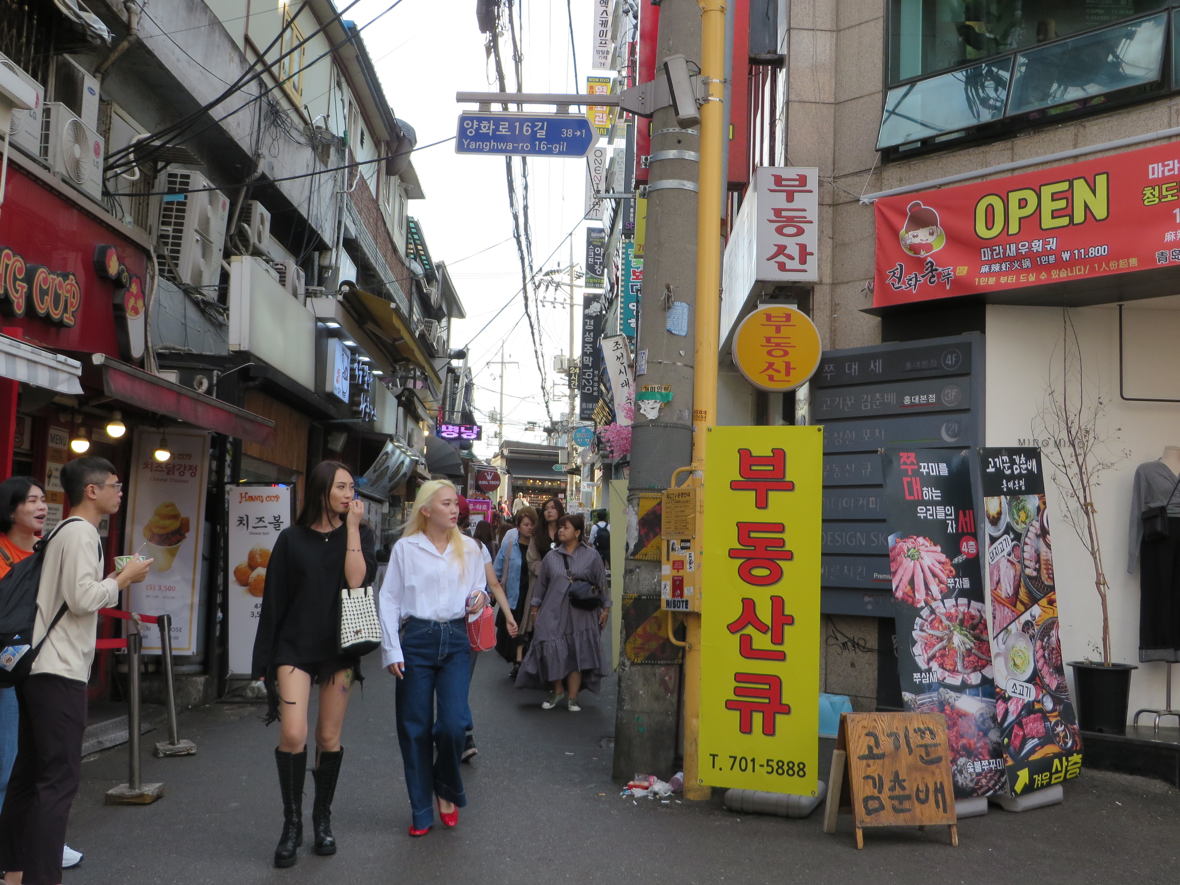 Zu Hause haben wir für die ersten drei Stopps unserer Rundreise eine Unterkunft gebucht. Wir beginnen in Seoul, der Hauptstadt von Südkorea. Von den 51 Millionen Einwohner Südkoreas leben 10 Mio. in Seoul. Mit den umliegenden Städten sind es 23 Mio. und damit nach Tokyo der zweitgrößte Ballungsraum weltweit. Aber heute soll es noch gar nicht so viel Informationen geben. Hier erst einmal ein paar Bilder von unserem ersten Spaziergang in Hongdae, dem Universitätsviertel, wo wir auch schlafen.