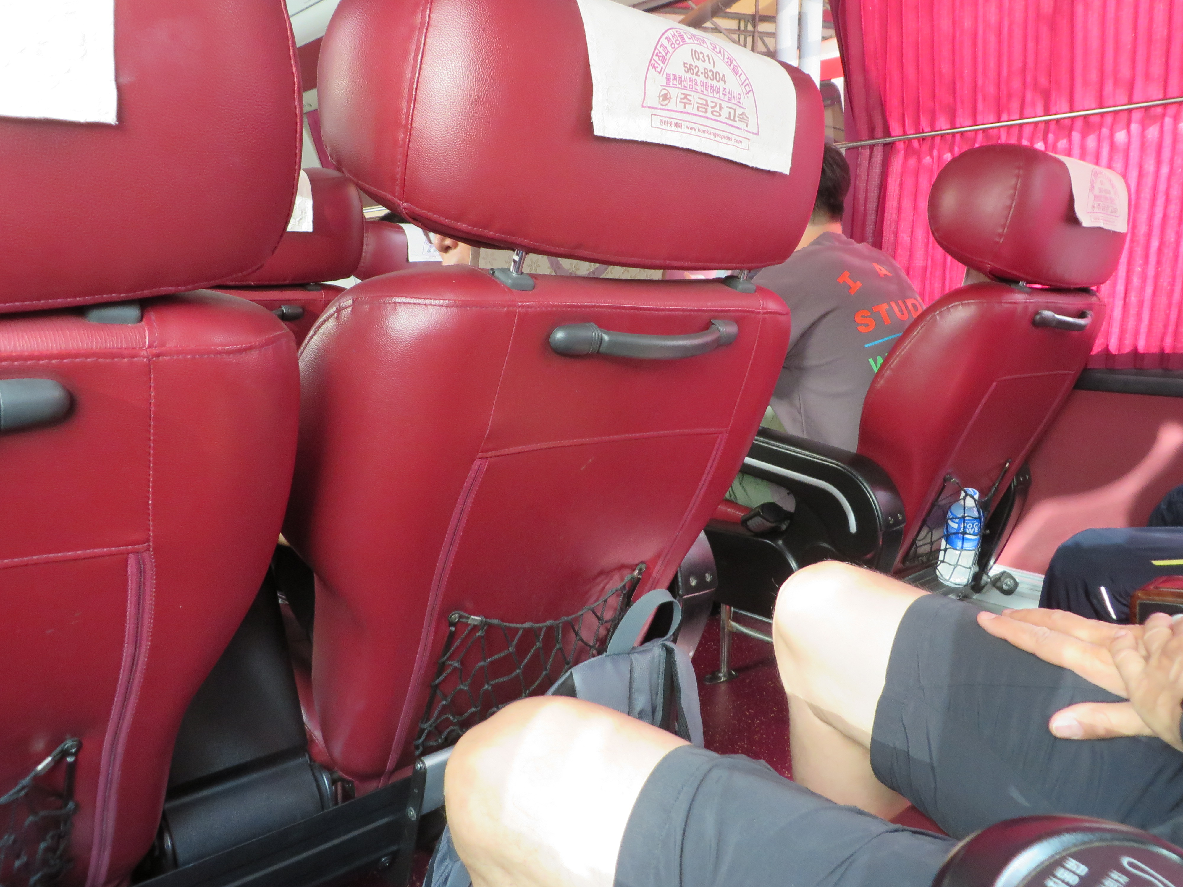 Die Busse sind sehr bequem. Es gibt eine Doppelreihe und eine Reihe mit Einzelsitzen. So sind die Plätze recht groß. Auf die Minute genau ist er losgefahren.