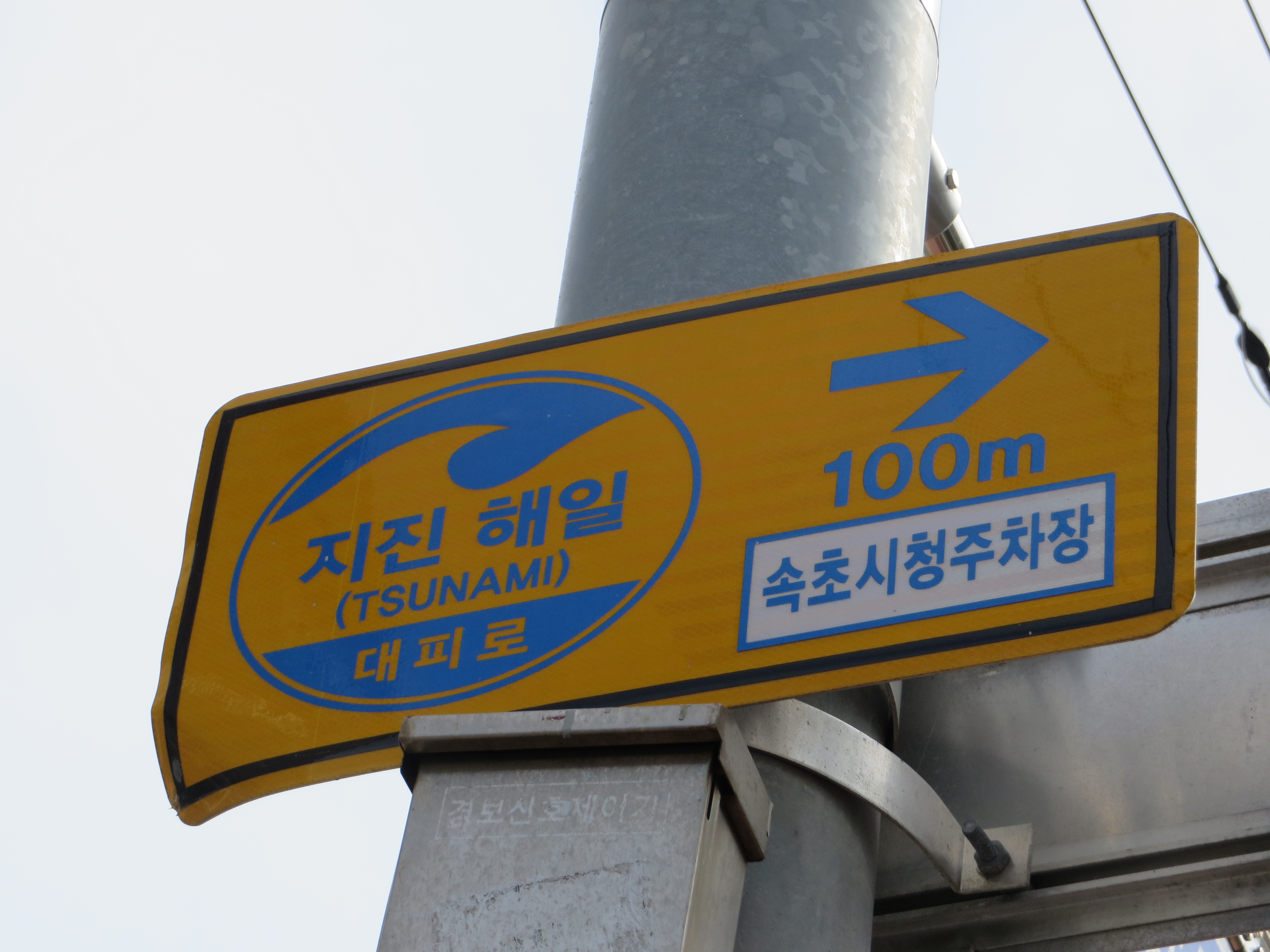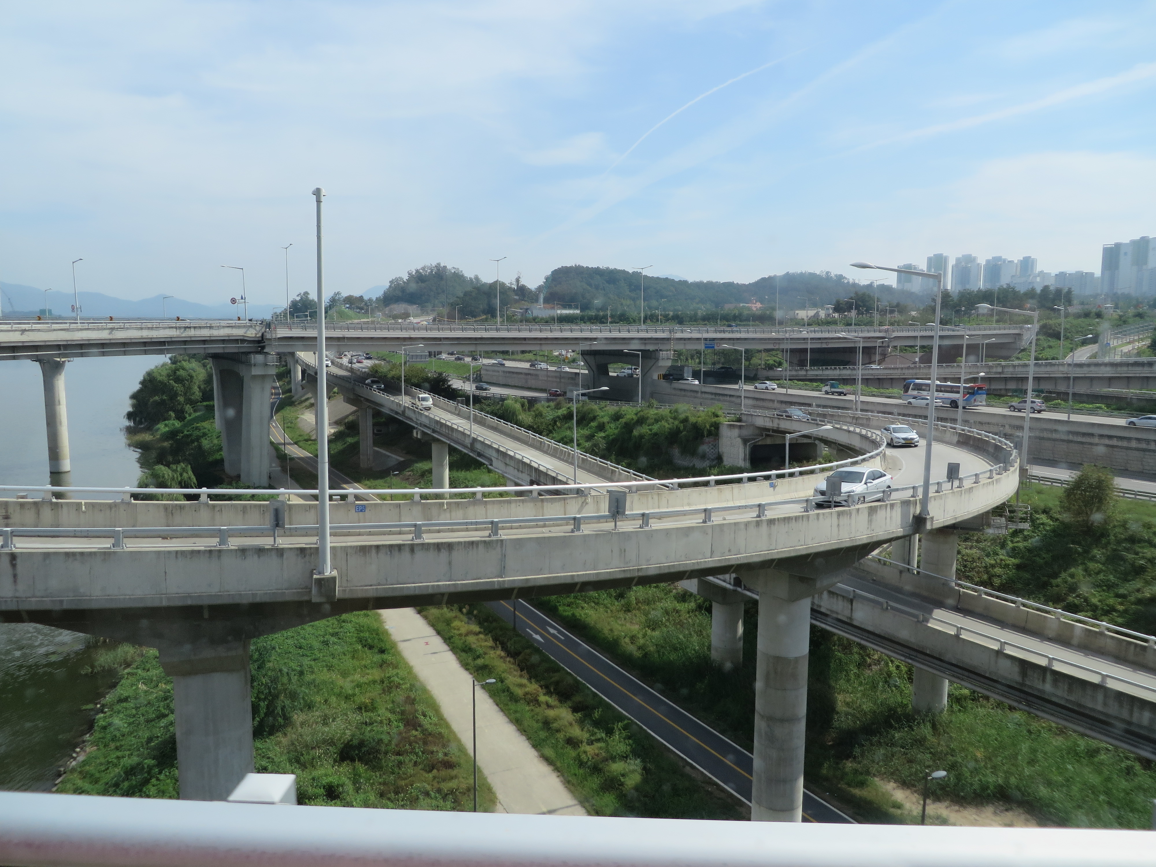 Der Bus fuhr die 176 km von Seoul nach Sokcho direkt, mit nur einem kurzen Stopp auf einem Rastplatz. Die Strecke führte durch eine schöne Berglandschaft. Allerdings konnte man darauf nur immer einen schnellen Blick werfen. Wir fuhren durch unzählige Tunnels. Kürzere und sehr lange. Wir fuhren mehr in Tunnels als draußen. Was für eine Autobahn. Horst würde sagen, dass wir Deutschen für den Bau einer solchen Straße mindestens 20 Jahre bräuchten.