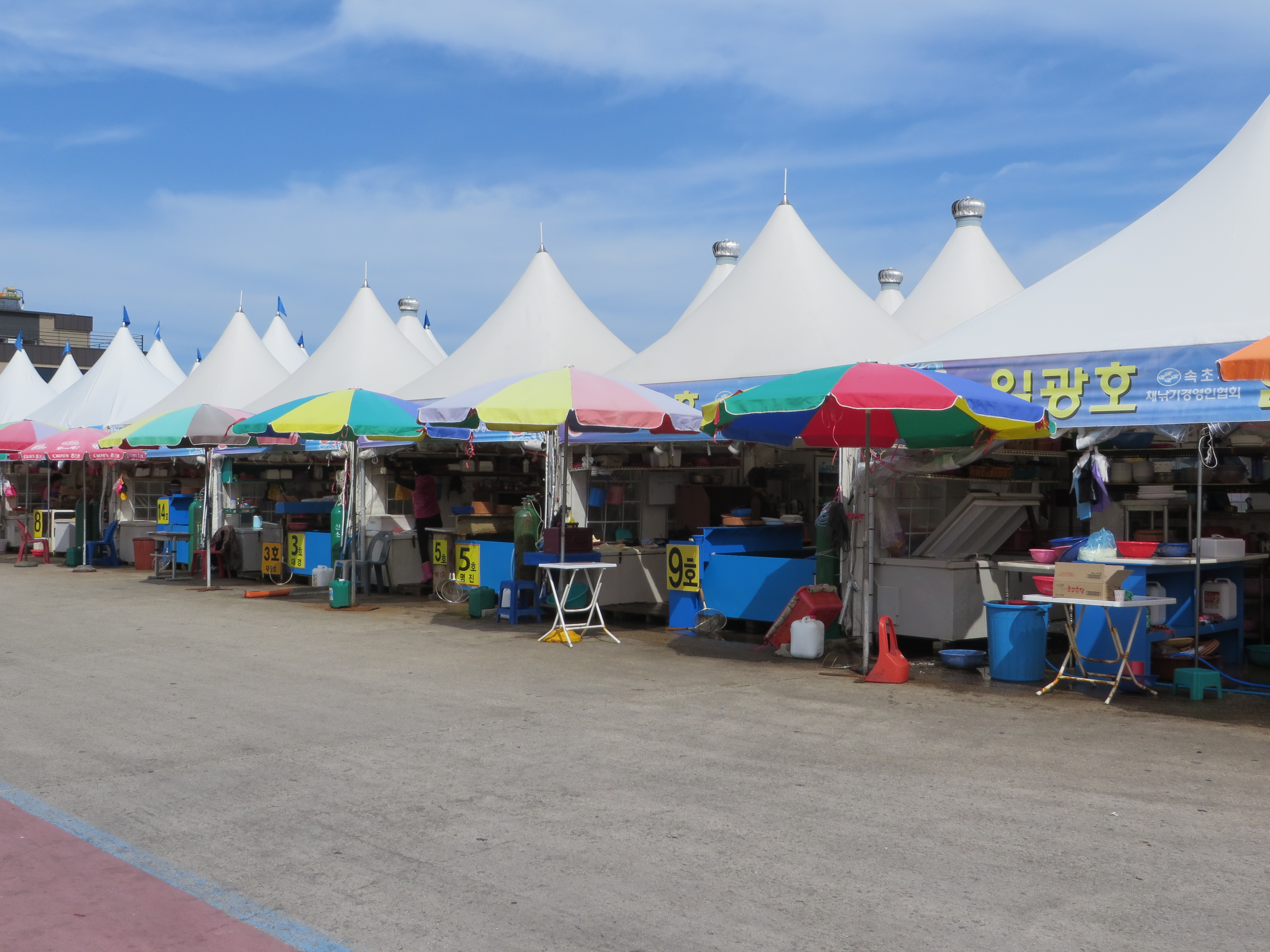 Sokcho ist eine kleine Stadt mit einem Fischereihafen am Ostmeer. Eigentlich heißt es Japanisches Meer, aber die Koreaner weigern sich, diese Bezeichnung zu verwenden und sagen Ostmeer. Verständlich bei den leidvollen Erfahrungen mit dem feindlichen Nachbarn Japan. 1910 bis 1945 war Korea eine japanische Kolonie.