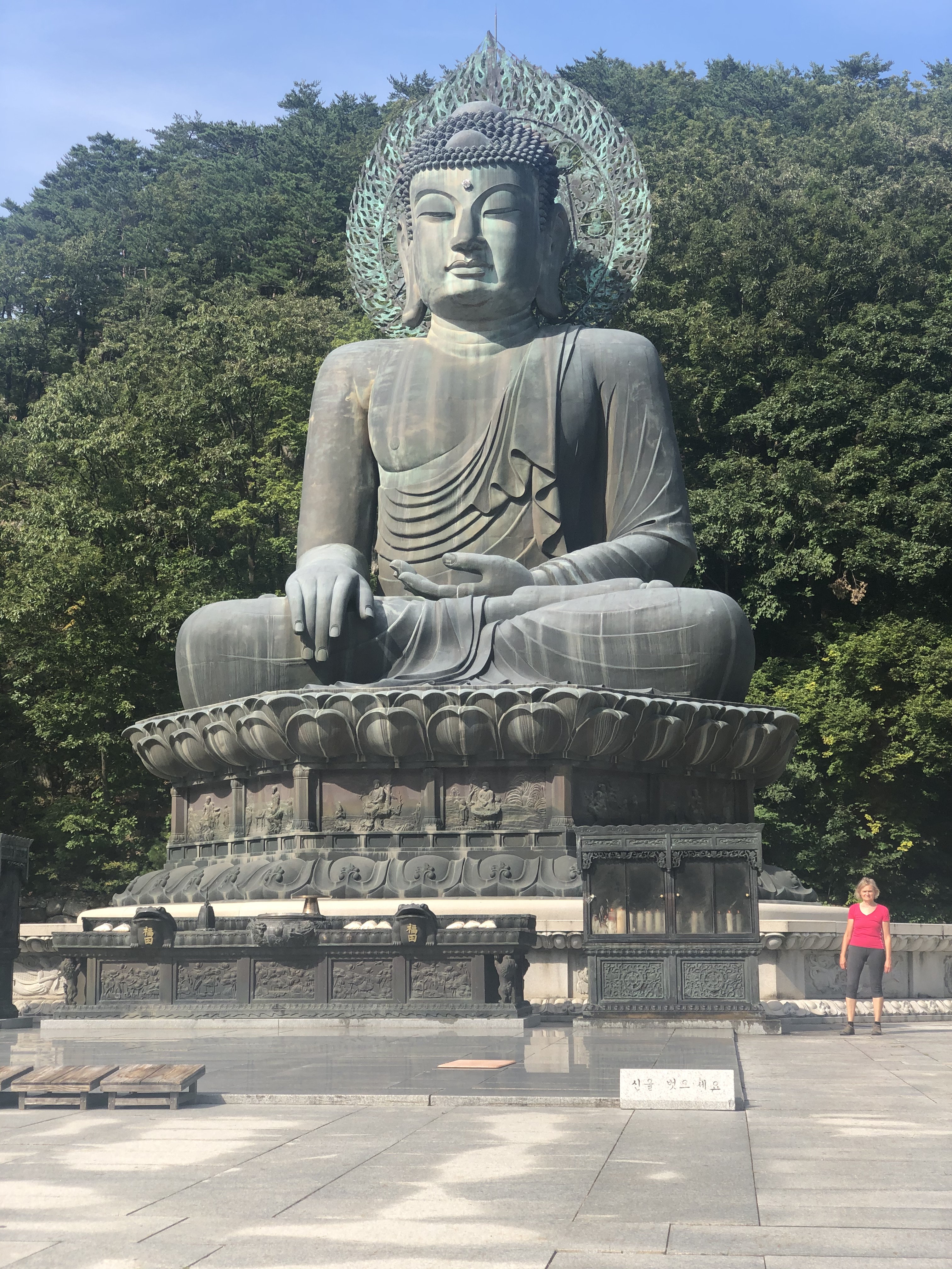 Nach einer Pause mit Kaffee und Ginsengtee wanderten wir weiter in den Park hinein. Der Weg führte vorbei an einem Buddha.