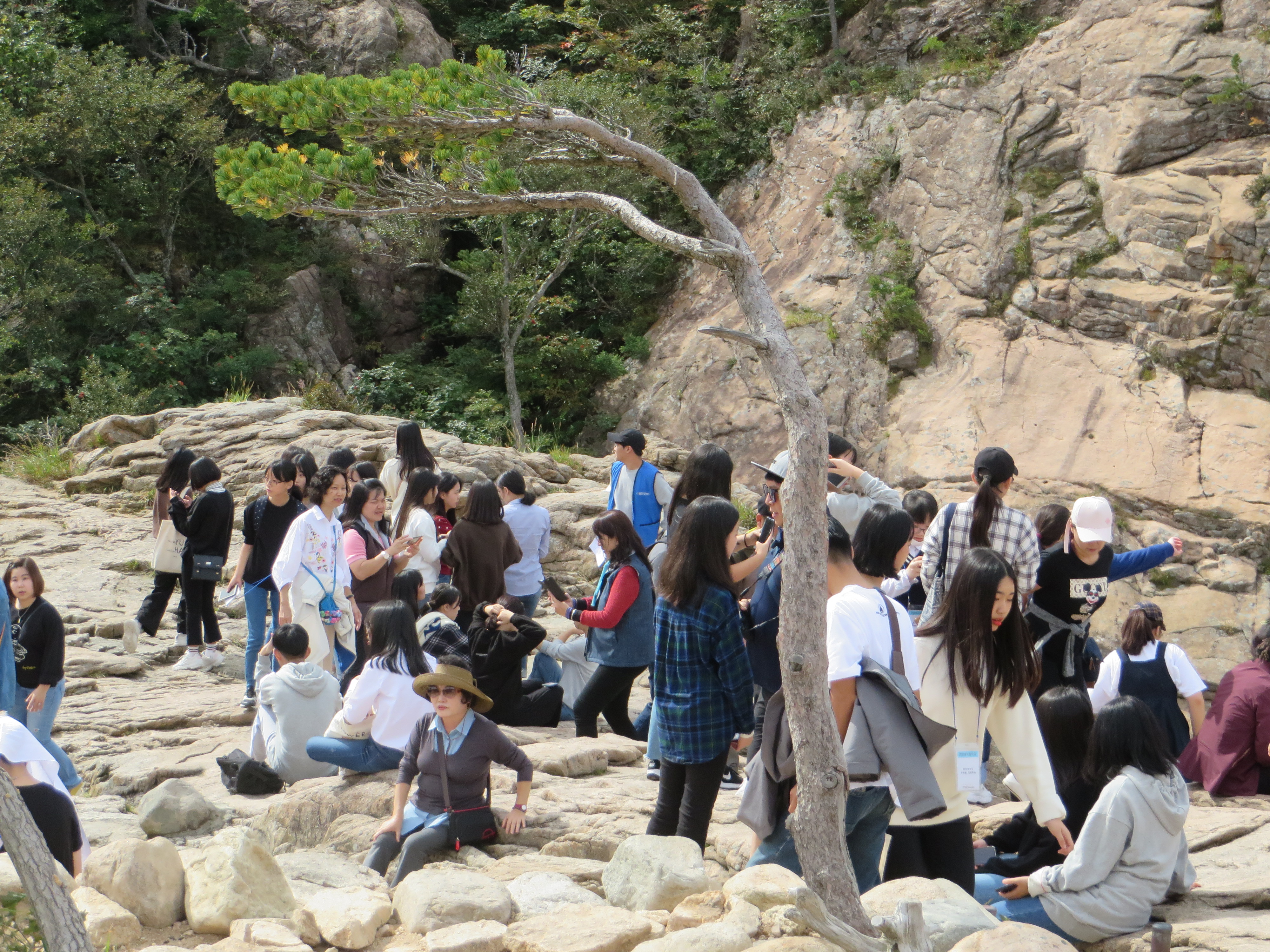 Südkorea ist etwa so groß wie Bayern und Baden-Württemberg zusammen. Es hat 21 Nationalparks. Wir waren heute im Seoraksan Nationalpark wandern. Deshalb haben wir uns für zwei Nächte eine Unterkunft in der Nähe des Parkeingangs gesucht.