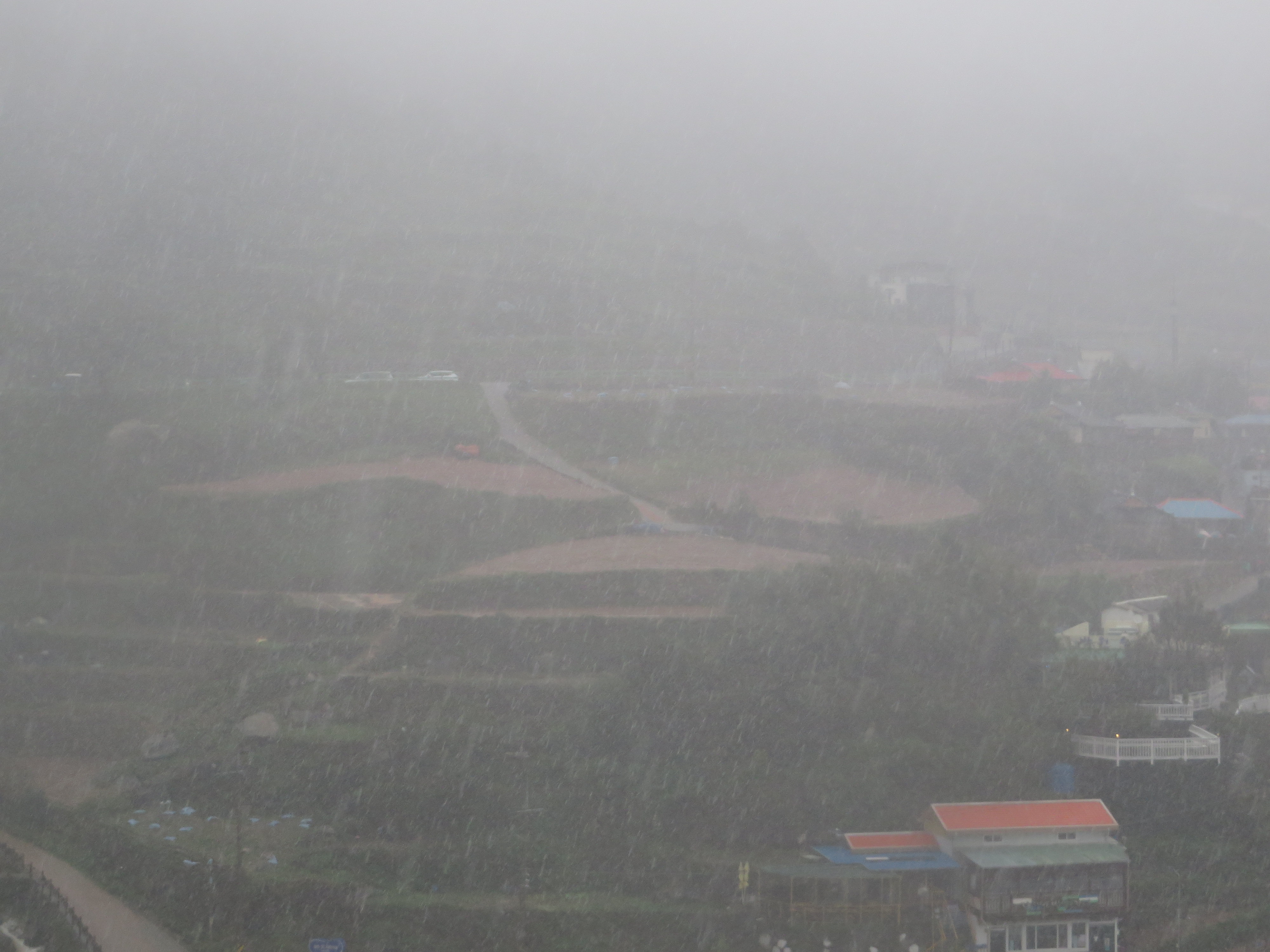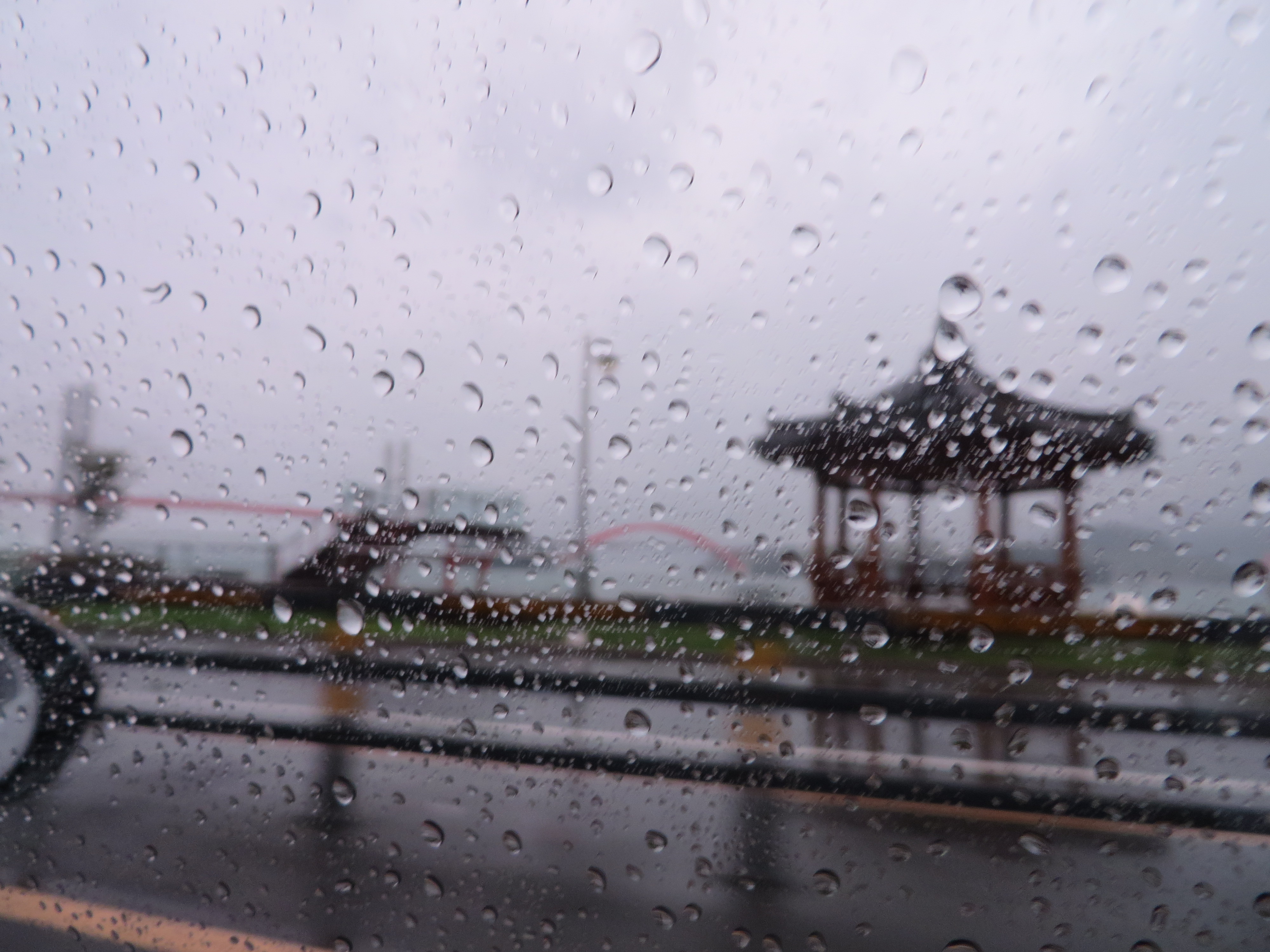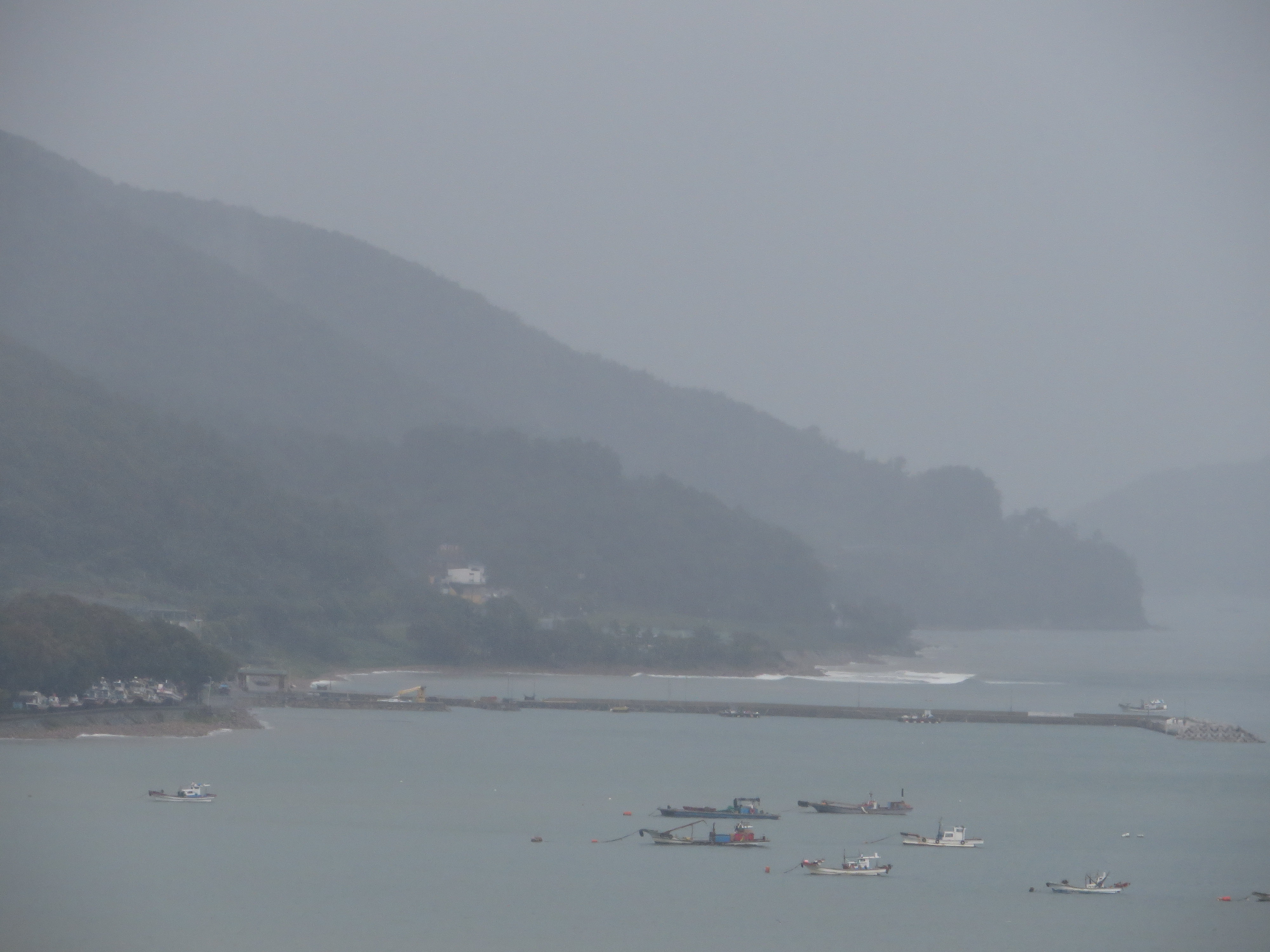 Wir sind heute Nacht in Suncheon. Hier im Hotel fühle ich mich sicher, während ich draußen weiter den Regen prasseln höre. Mal sehen, wann der Sturm eintrifft.