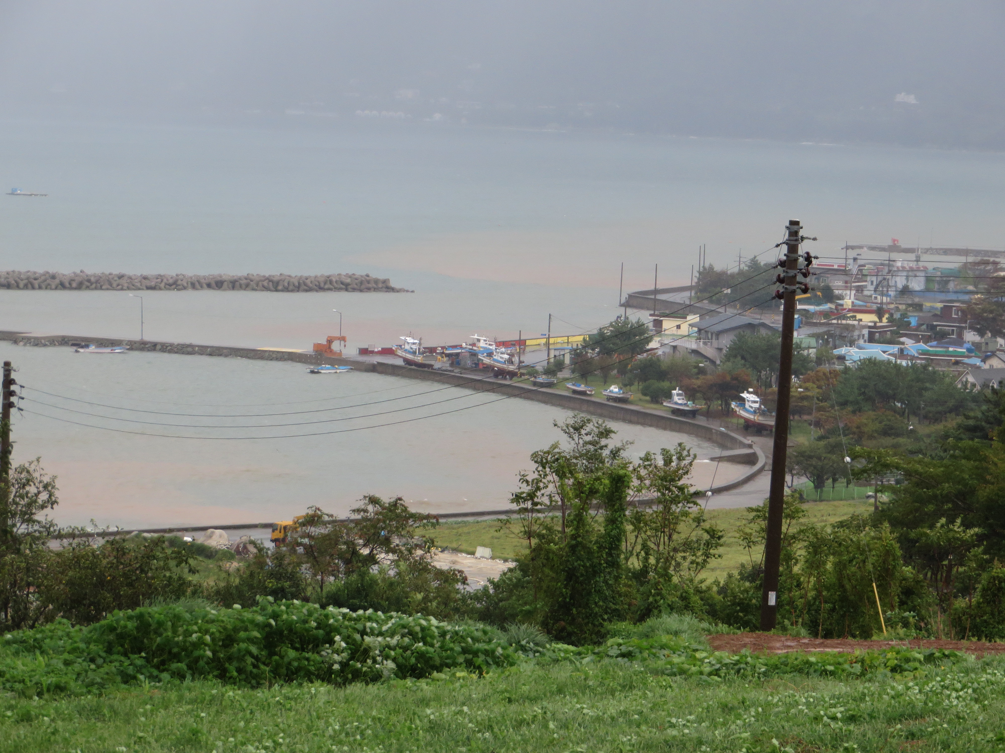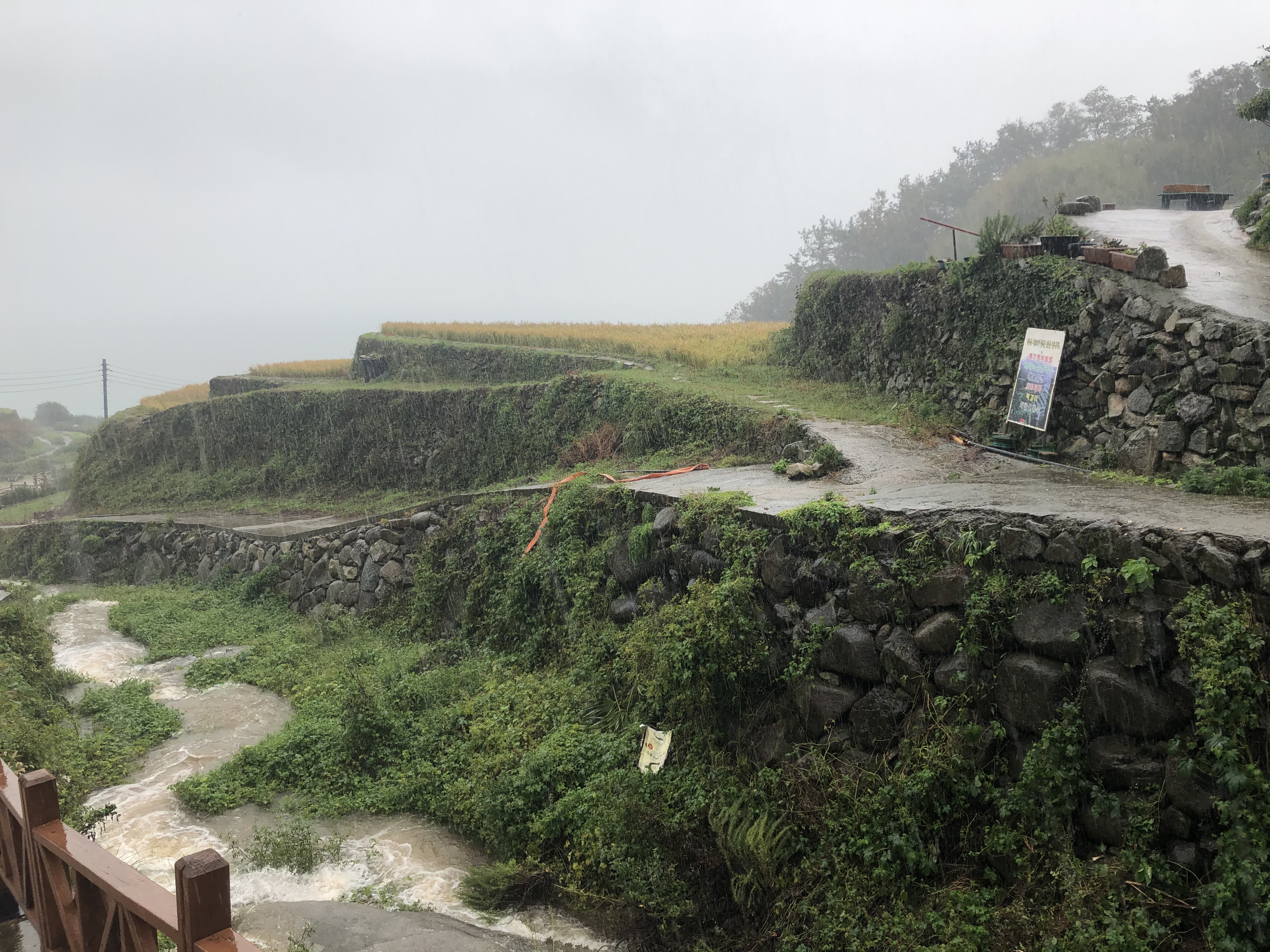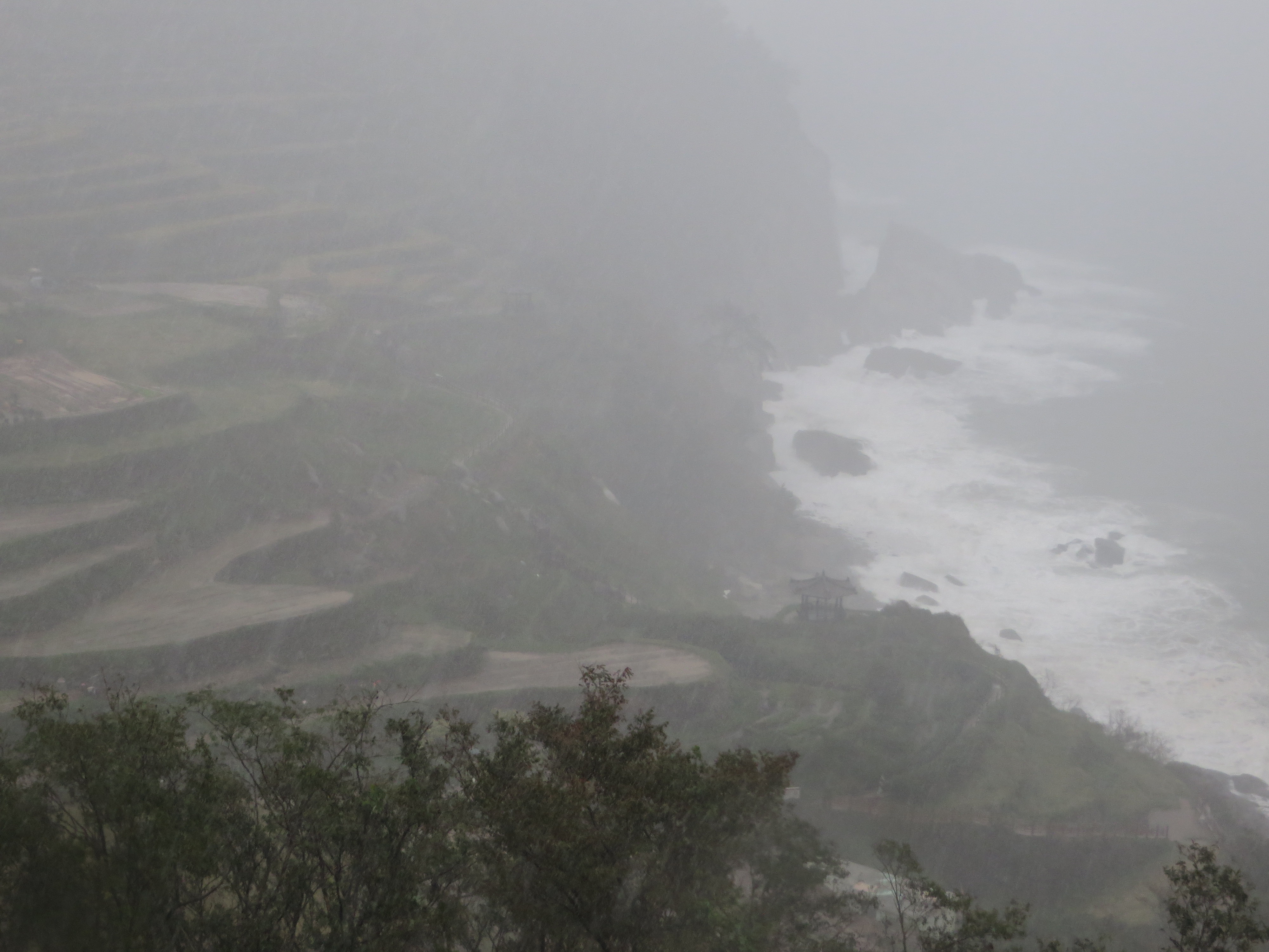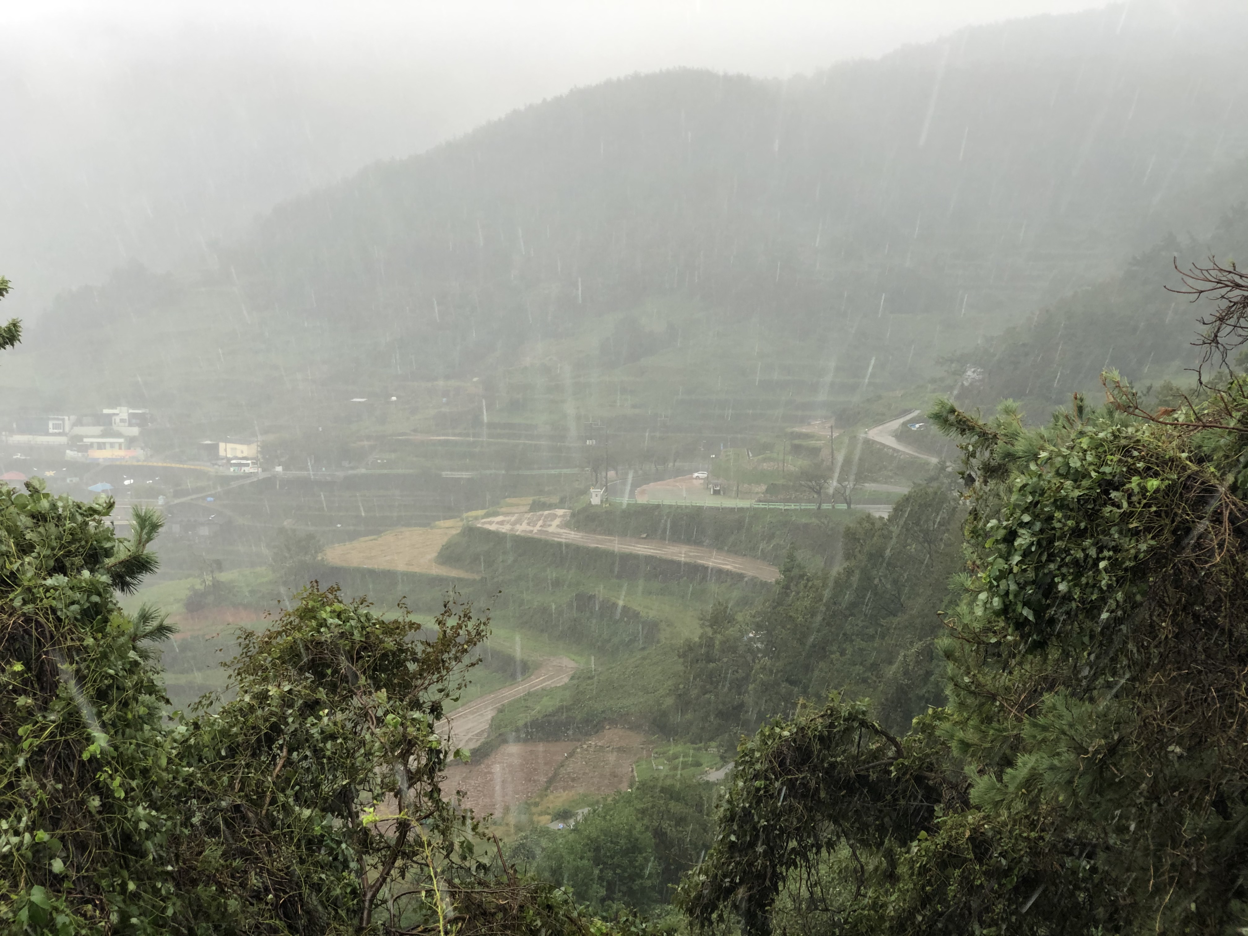 Wir sind heute Nacht in Suncheon. Hier im Hotel fühle ich mich sicher, während ich draußen weiter den Regen prasseln höre. Mal sehen, wann der Sturm eintrifft.