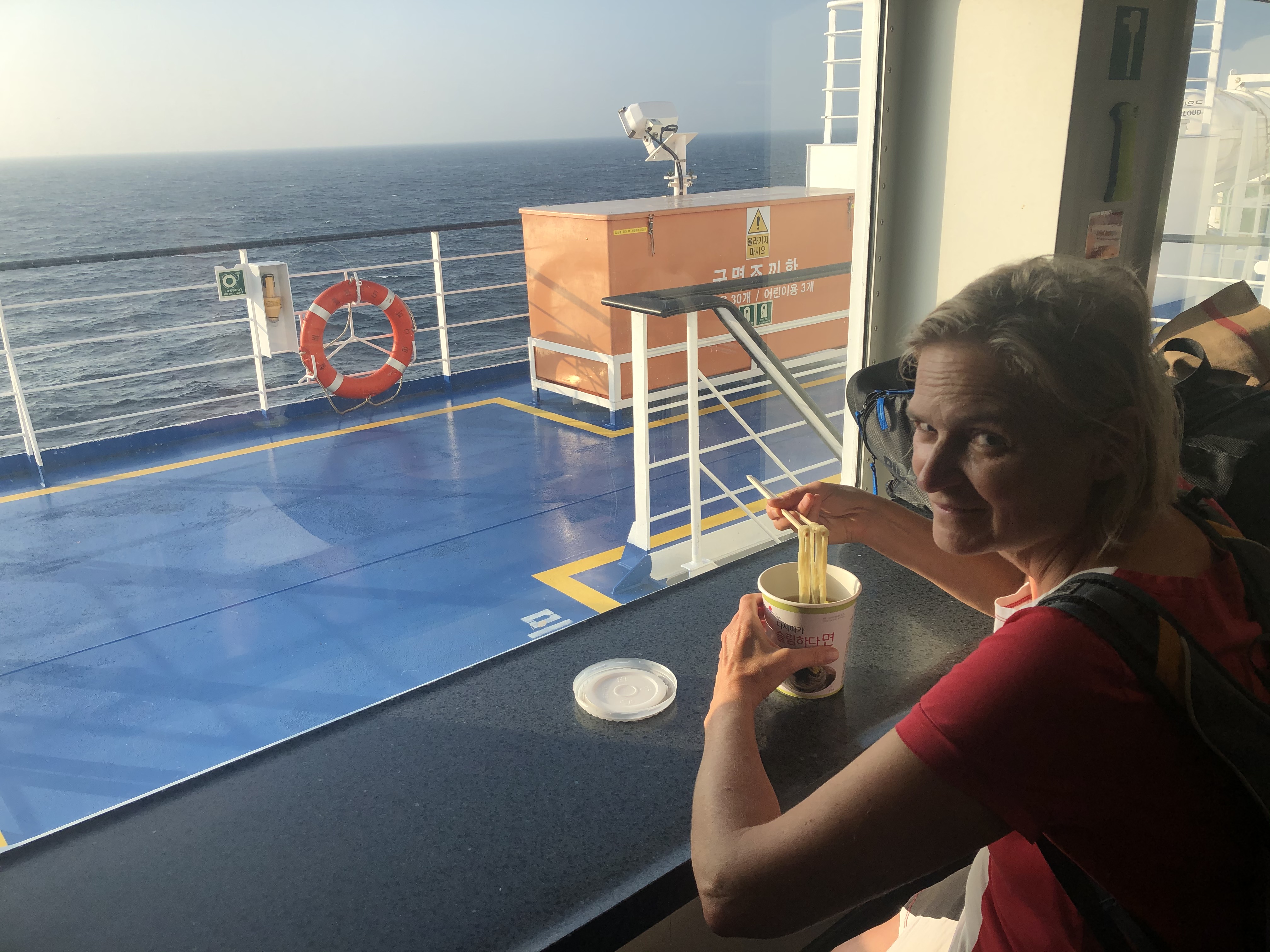 Wir hatten aus Zeitgründen die Insel Jeju von unserem Reiseplan gestrichen und dann haben mehrere Leute gesagt, dass wir unbedingt auf die Insel müssen. Sogar das alte Ehepaar im Zug, das nahezu kein Englisch sprach, hat uns zu verstehen gegeben, dass wir unbedingt auf Jeju fliegen müssen. Also gut. Wir haben in Busan zwei Tage eingespart und weil es bis zu unserer nächsten Kreuzfahrt noch 10 Monate dauert sind wir mal wieder Schiff gefahren.