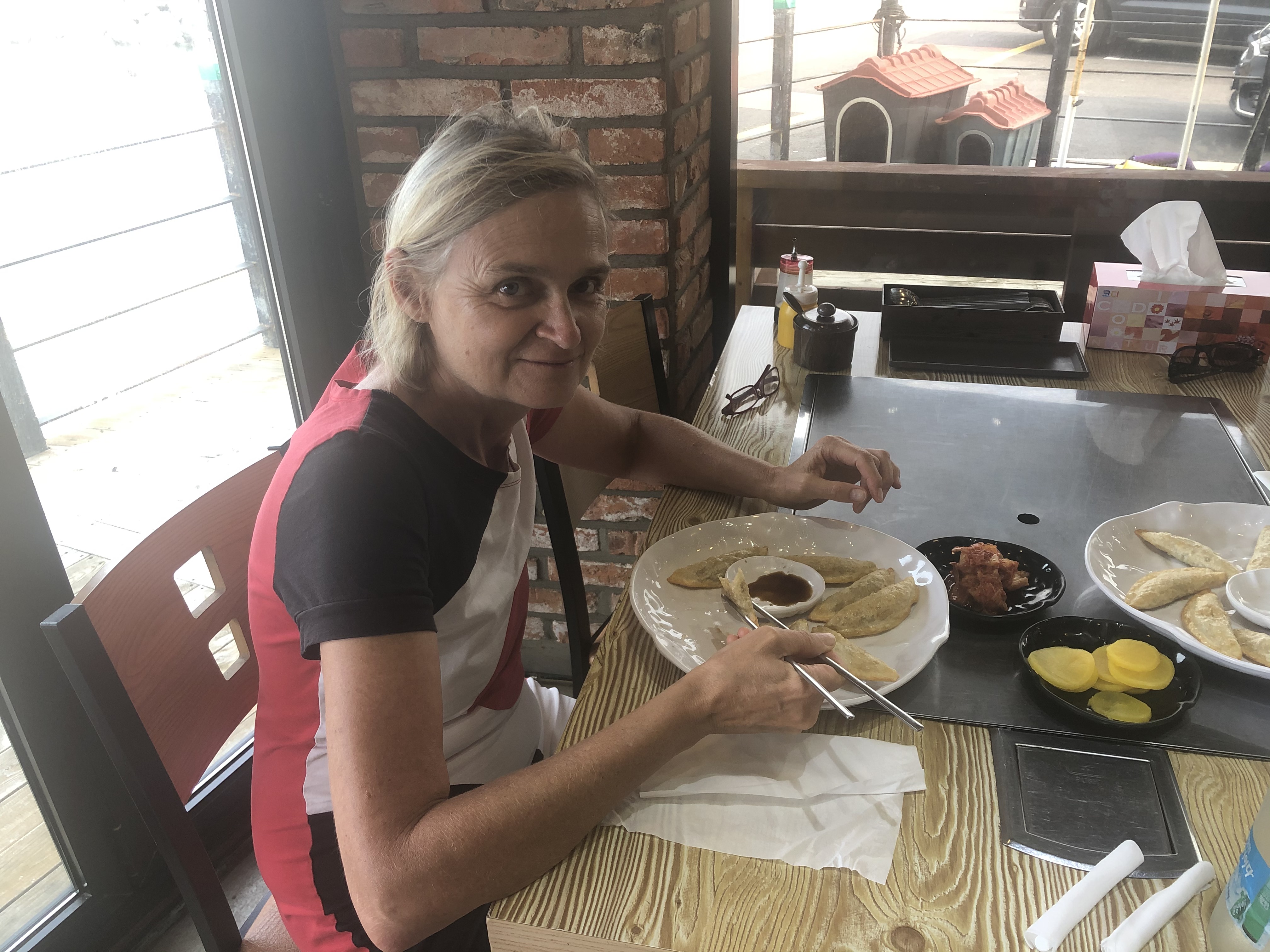 Die Speisekarten in Korea sehen entsprechend aus: Fisch, Krabben, Garnelen und auch viel Fleisch. Da ist das Essen nicht immer leicht. Manchmal gehen wir zu McDonalds. Aber heute haben wir Dumplings (Maultaschen) bestellt.