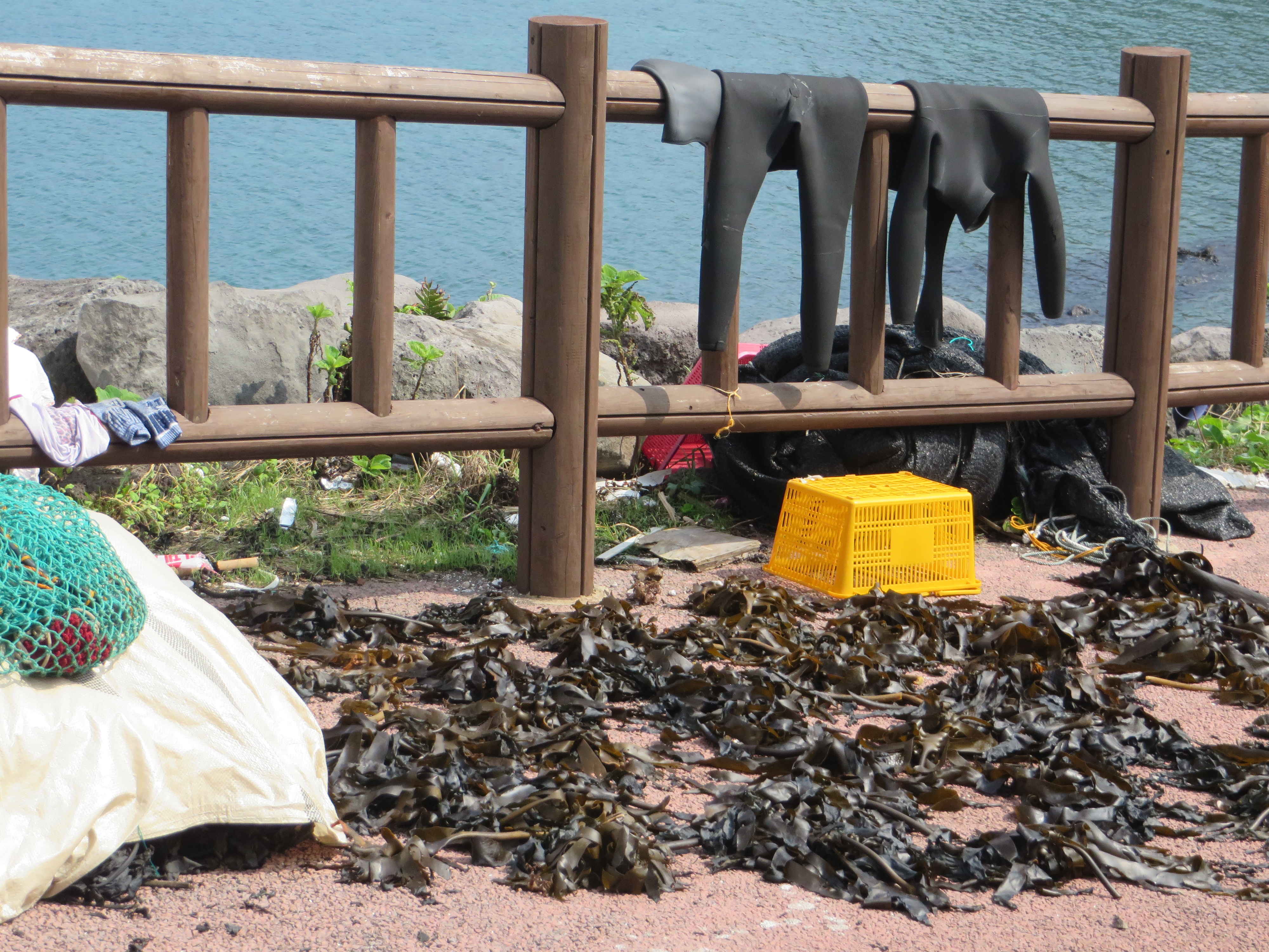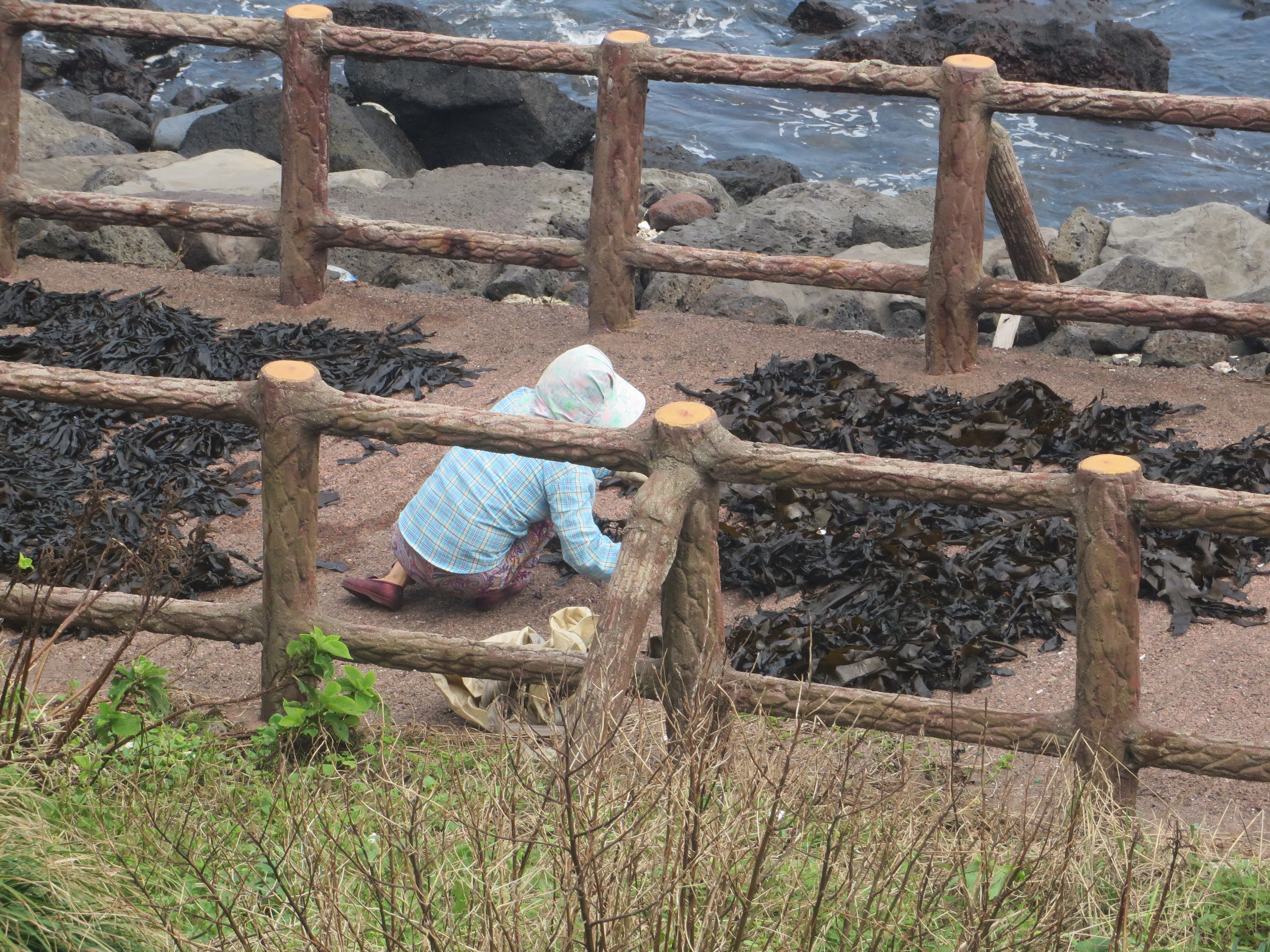 Gesehen haben wir nur Neoprenanzüge und Frauen, die Seetang zum Trocknen ausgelegt haben.