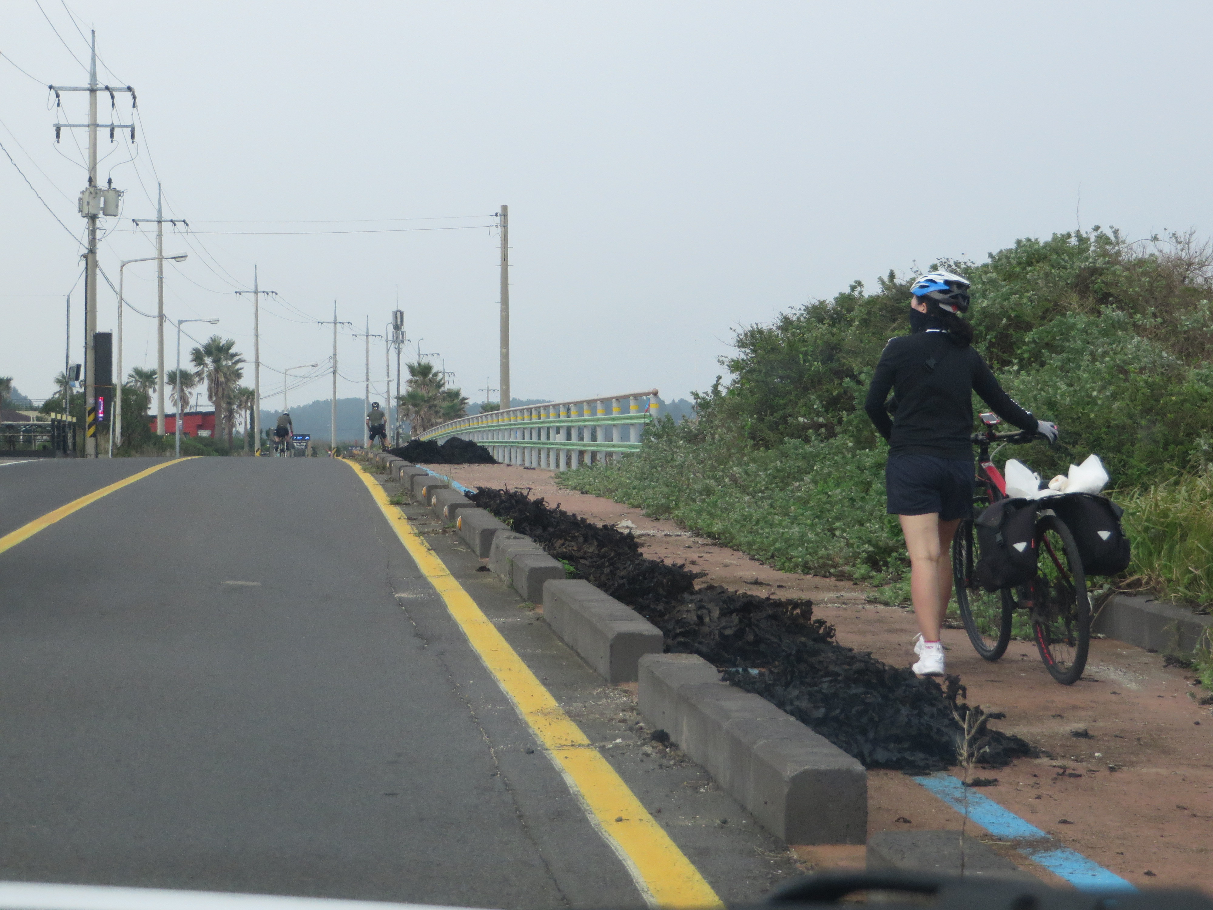 Überall liegt Seetang. Auch auf dem Fahrradweg.
