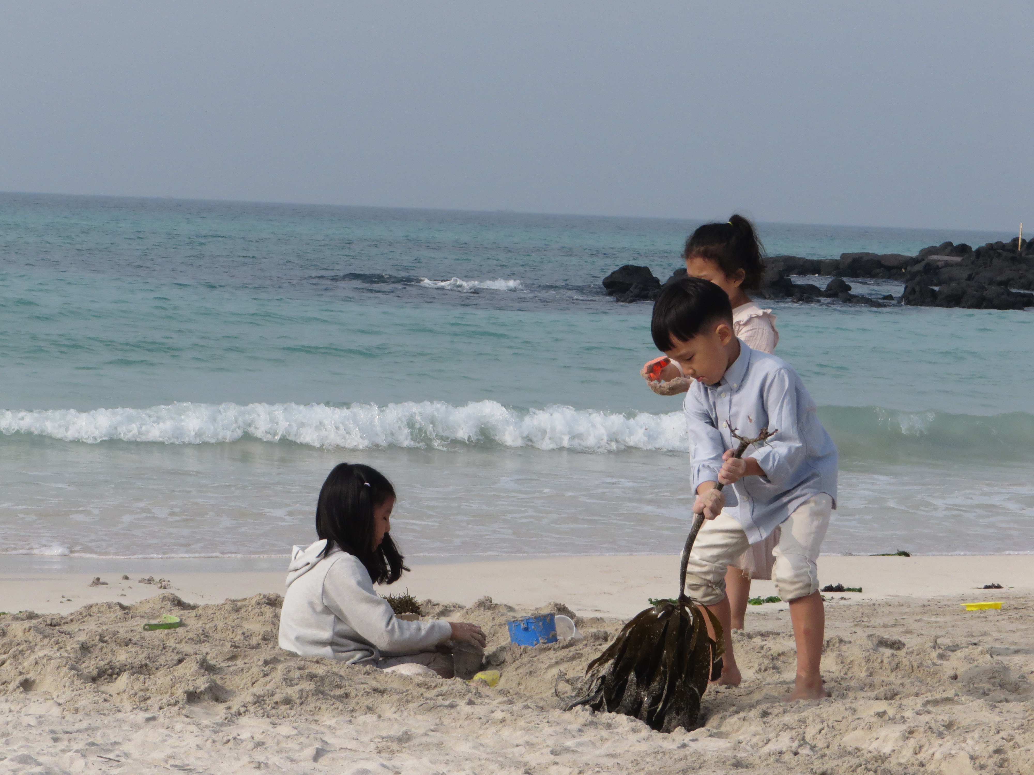 Wir sind hierher gekommen, um die Haenyeo, Jejus Taucherinnen zu sehen. Im späten 19. Jh. wurden hohe Steuern für Taucher eingeführt. Allerdings nur für Männer, und so begannen die Frauen zu tauchen, um für sich und ihre Familien den Lebensunterhalt mit dem Sammeln von Seegras und Meeresfrüchten zu verdienen. Noch in den 1960er Jahren waren die Haenyeo für 60 % von Jejus Fischereiumsatz verantwortlich, während sich ihre Männer um Heim und Hof kümmerten und keiner geregelten Beschäftigung nachgingen.