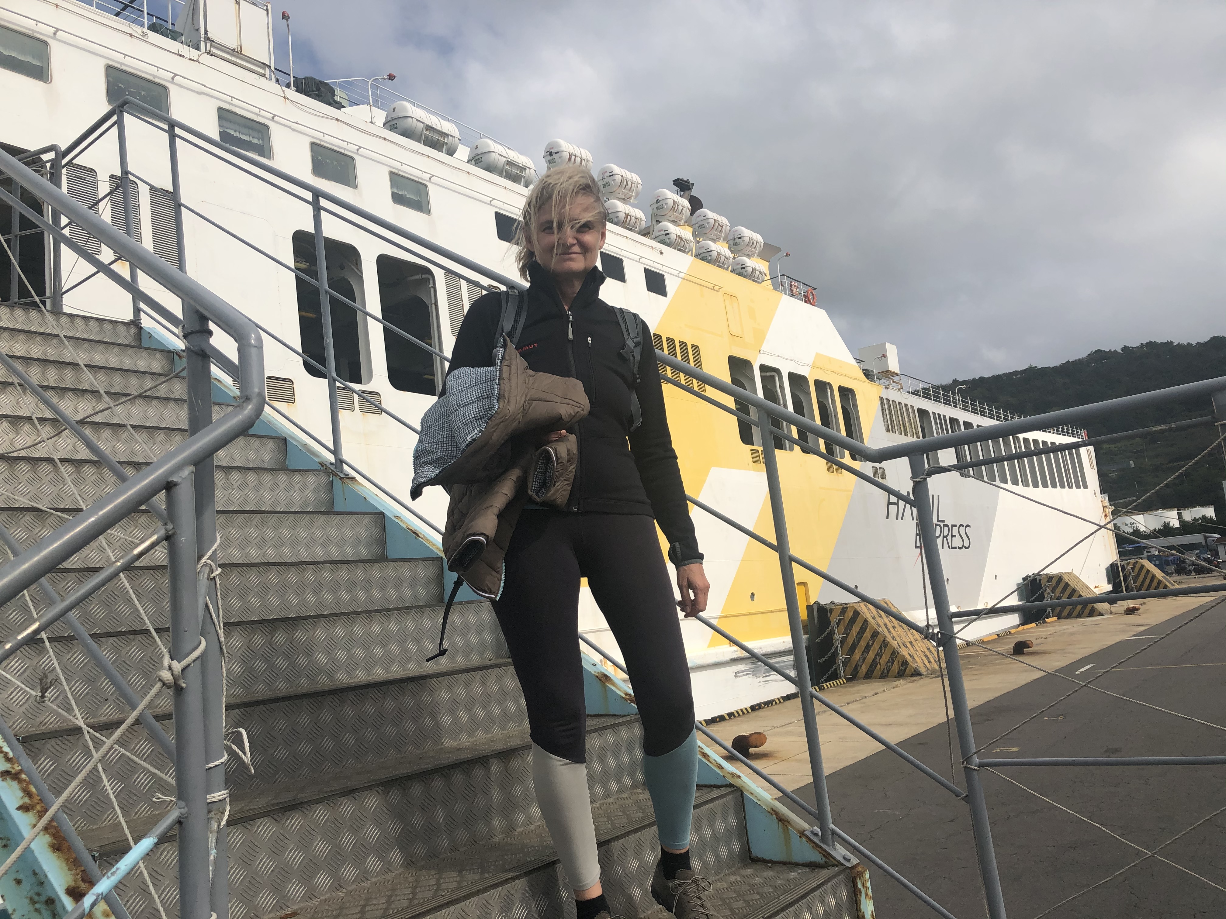 Wir waren drei Tage auf der Insel Jeju und sind heute mit der Fähre zurück gefahren. Weil das Buchungsportal nur auf Koreanisch zu bedienen war, hat unser Hotel die Fähre für uns gebucht.