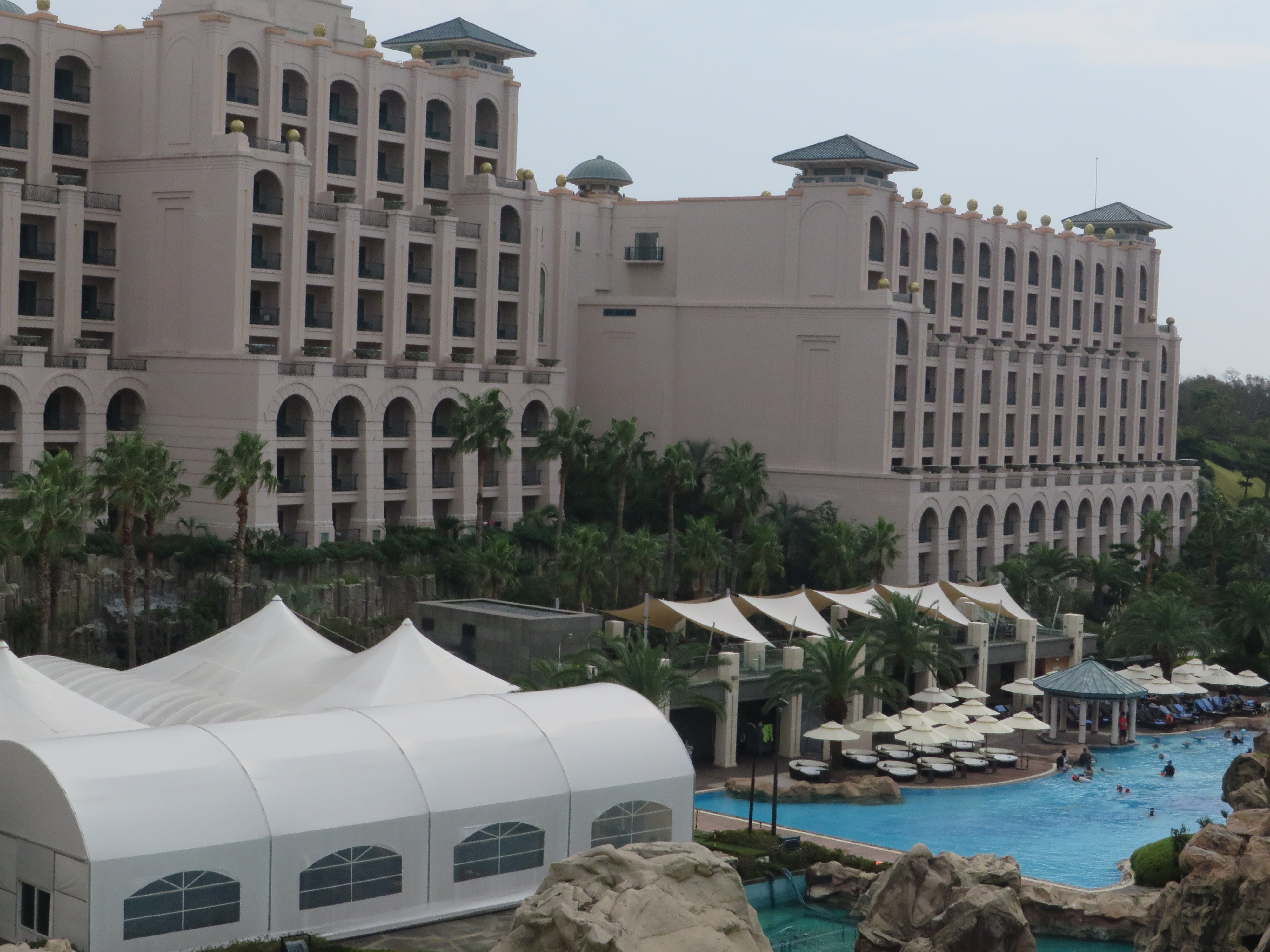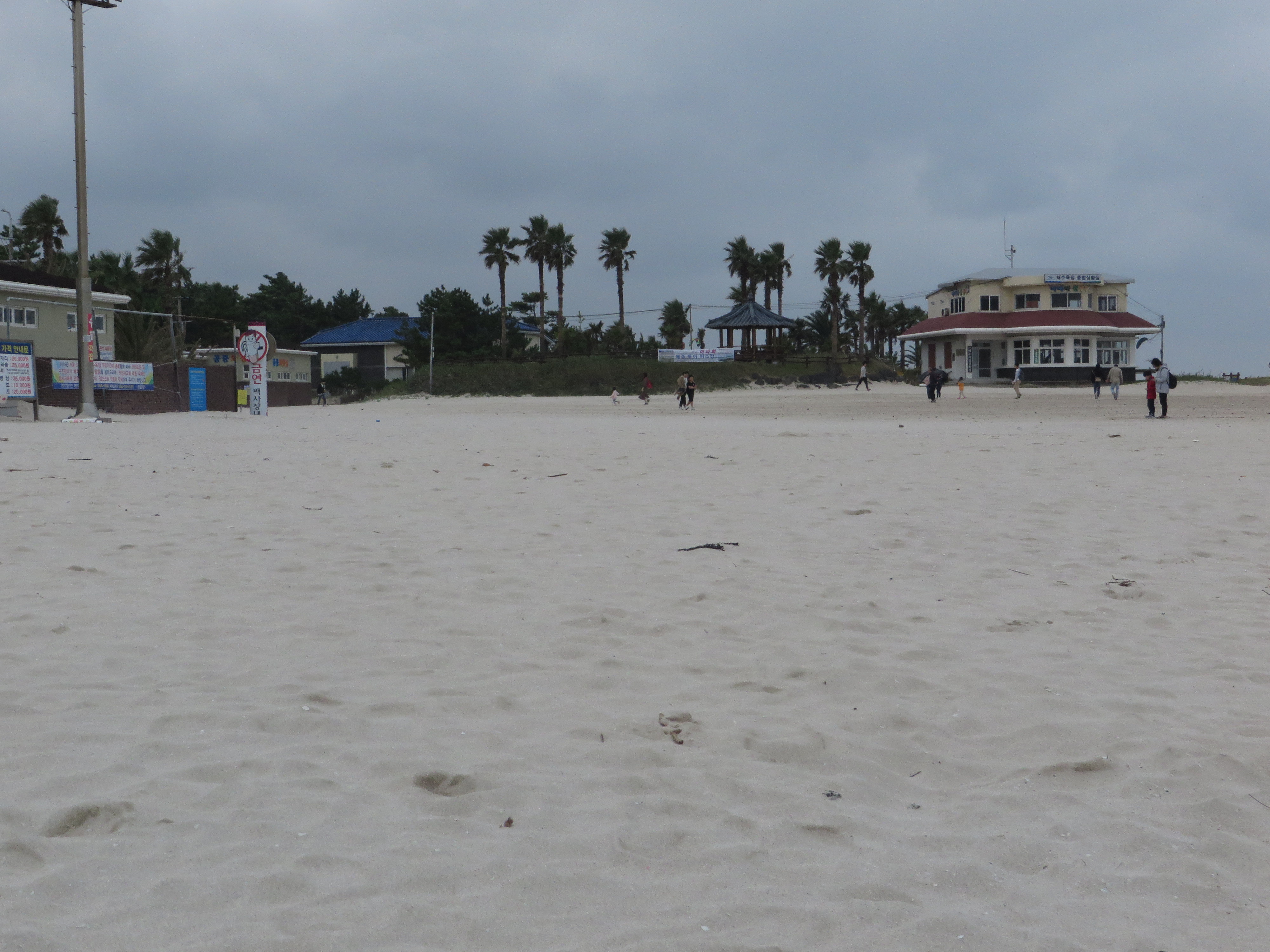 Die Saison auf Jeju ist eigentlich schon vorbei. Das Wasser aus den meisten Pools abgelassen (leider auch bei uns). Der 3. Oktober ist in Südkorea ebenfalls ein Feiertag (Gründung des ersten Königreiches auf der koreanischen Halbinsel) und so sind doch viele Leute hier. Es war gar nicht so einfach, ein passendes Hotelzimmer zu finden. Die Zimmer im Lotto Resort waren uns nämlich zu teuer. (Hier hätten wir aber noch im Pool schwimmen können.)