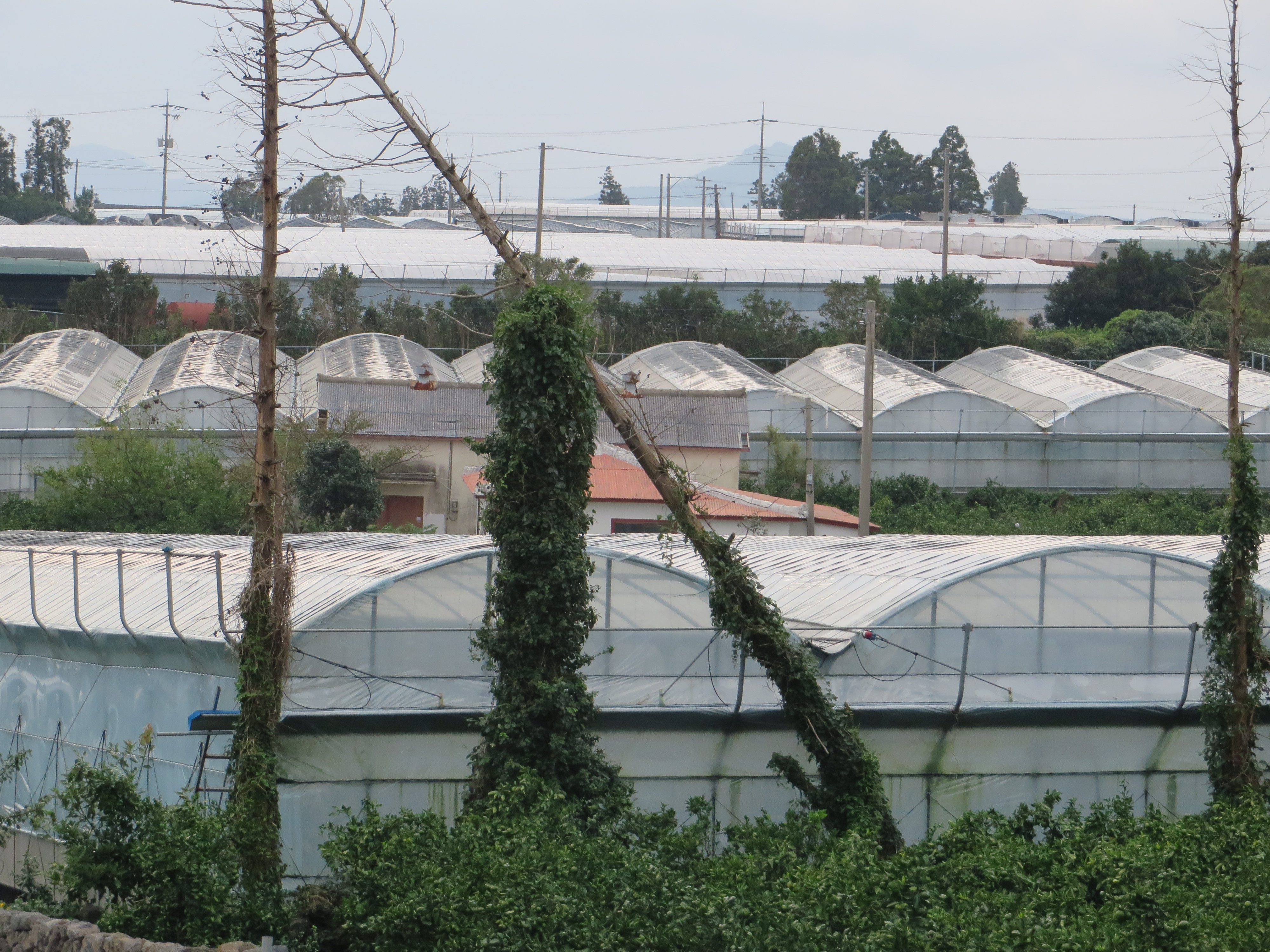 Auf Jeju gibt es viele Gewächshäuser. In allen wachsen Mandarinenbäume. Die brauchen eigentlich kein Haus. Vielleicht lässt sich so die Saison verlängern.
