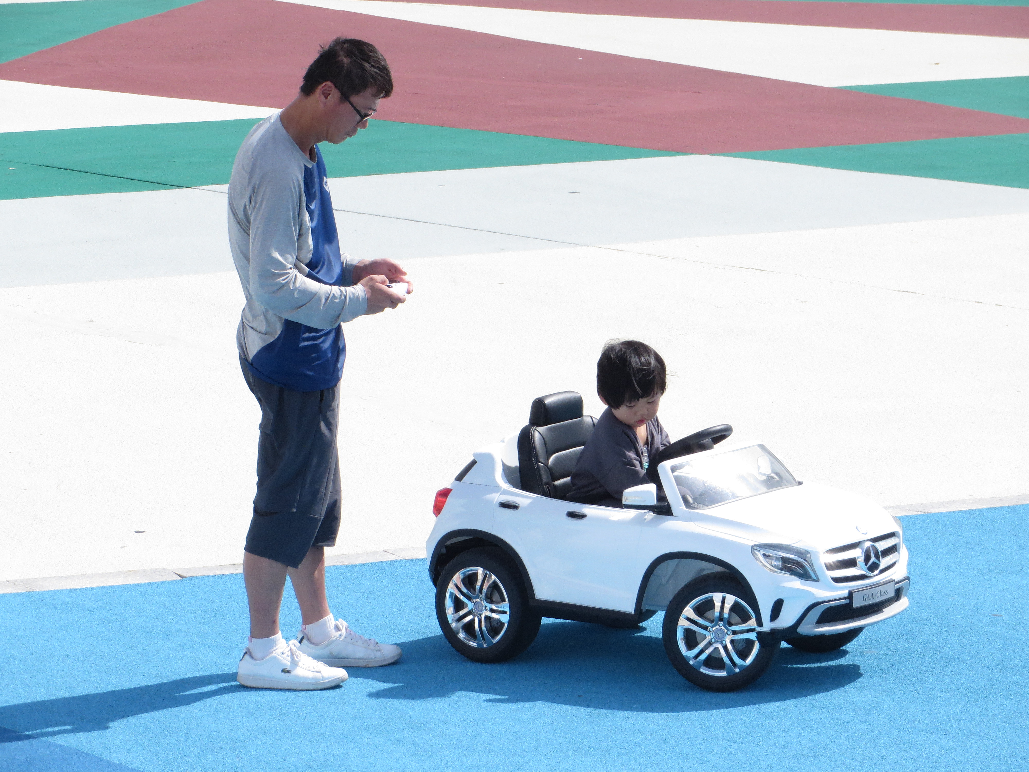 Mercedes steht an der Spitze der importierten deutschen Autos. Man kann nicht früh genug davon überzeugt werden. Der Papa hat übrigens das Auto mit einer Fernsteuerung gelenkt.