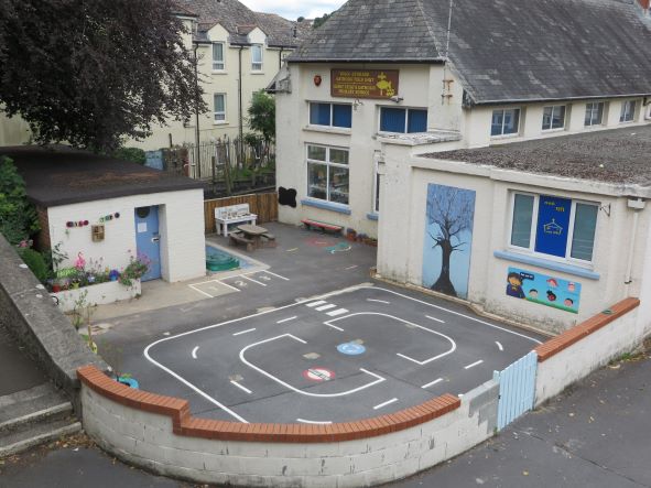 Verkehrsparcour für Grundschüler. Sogar ein Kreisverkehr ist dabei. Das ist auch nötig. Es gibt nahezu keine Kreuzungen, sondern immer einen Kreisverkehr.