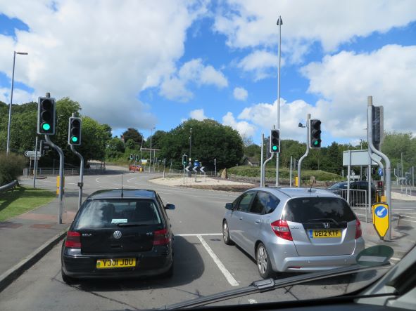 Sogar mit Ampeln. Und wer sich bei mehreren Spuren im Kreisverkehr falsch einordnet, kommt nicht da raus, wo er eigentlich wollte.