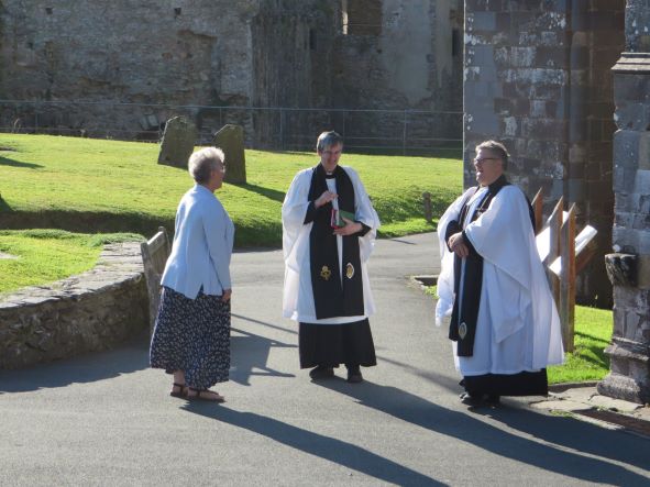 Die Kathedrale von Saint Davids gehört zur Church of Wales, die allerdings nicht mehr Staatskirche ist. Etwa die Hälfte der Waliser bezeichnen sich als Christen, jedoch sind die Freikirchen inzwischen stärker vertreten. Das und vieles mehr haben wir beim Weltgebetstag gelernt. Zum Beispiel wie wichtig die walisische Sprache für die Identität ist. Schilder sind immer zweisprachig.
