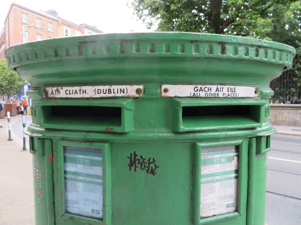 In Deutschland sind die Briefkästen gelb, in England rot und hier in Irland grün. So gehört sich das auf der grünen Insel.