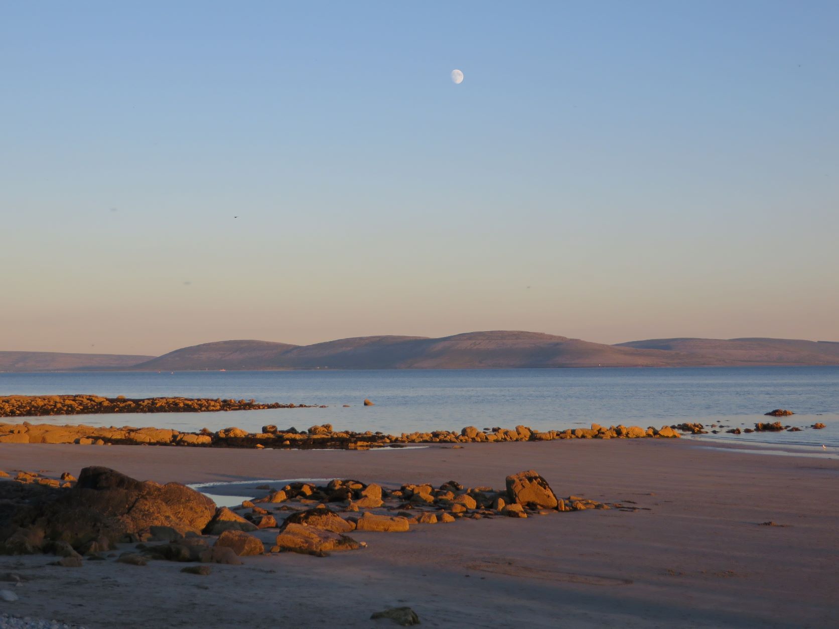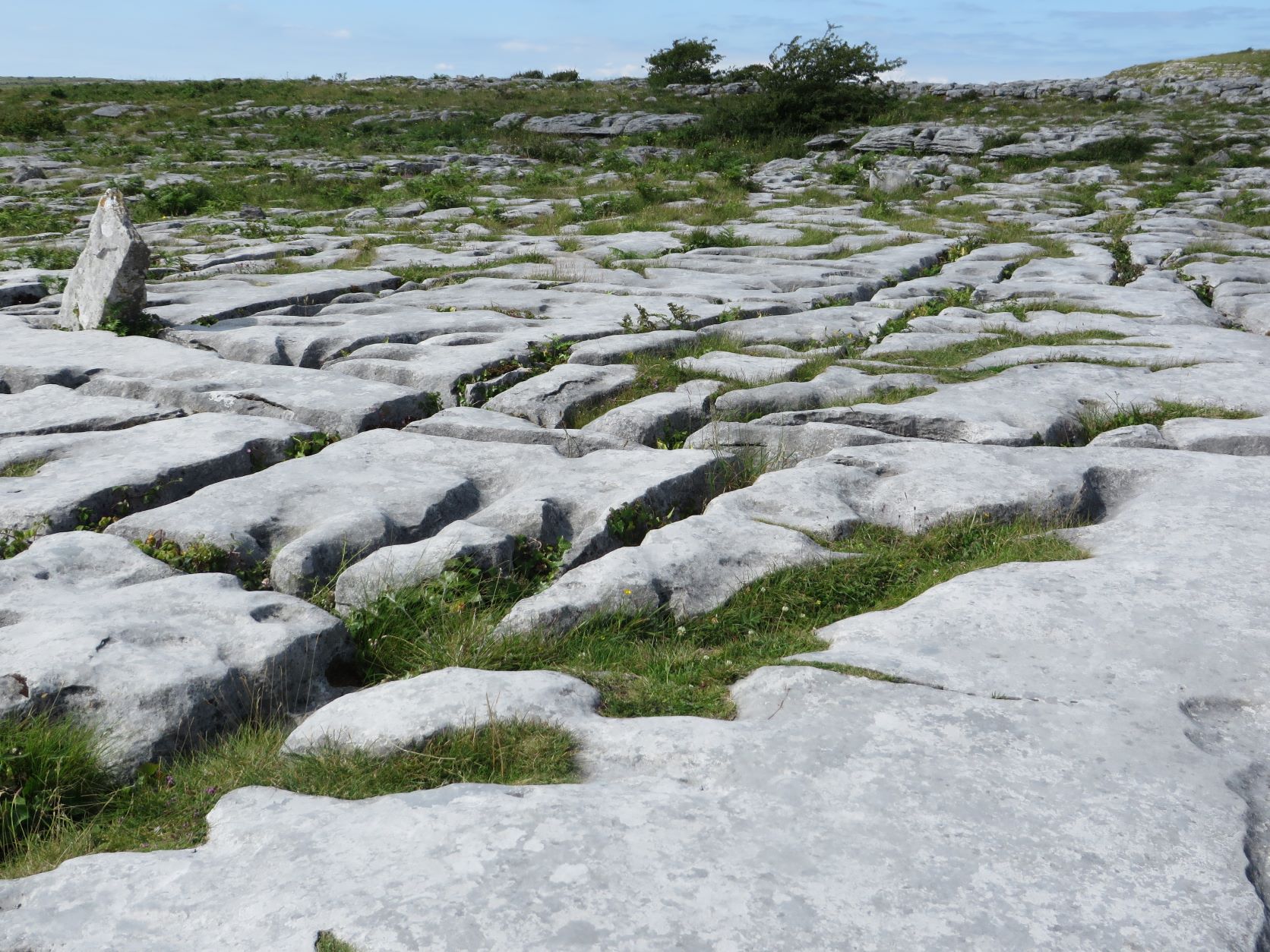 Die Region Burren gleicht einer Mondlandschaft. Zum Ende der Steinzeit ließen sich die nomadischen Sammler und Jäger hier nieder, rodeten die Wälder und begannen Ackerbau zu betreiben. Im Laufe der Jahrhunderte wurden die Kalksandsteinfelsen durch die Bodenerosion freigelegt.