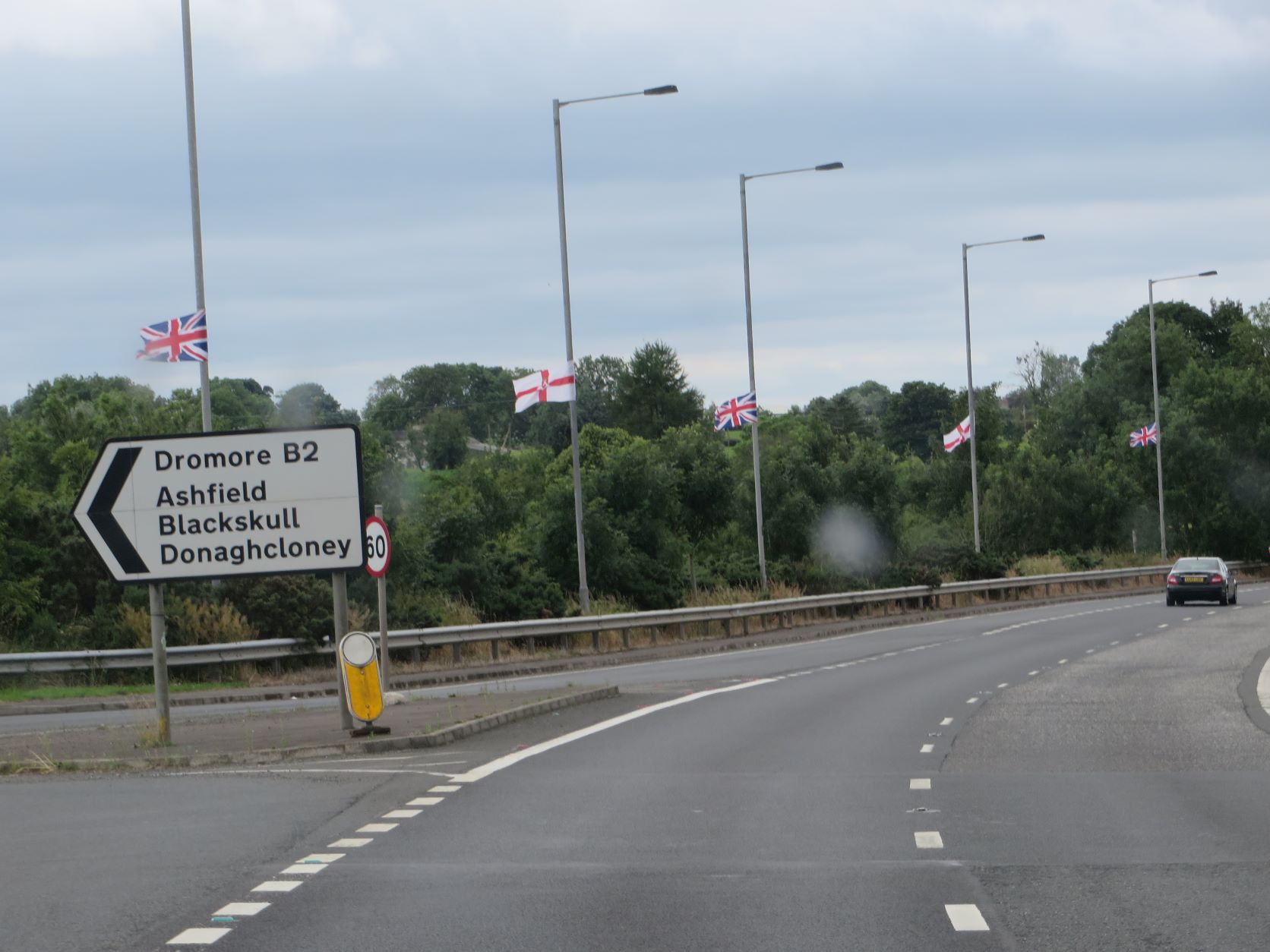 Das Gefühl hier in Nordirland ist merkwürdig. Zahlreiche Orte waren mit der Unionjack beflaggt und Fähnchen in weiß-rot-blau geschmückt. Ebenso Wohnsiedlungen in Belfast. Es wirkt auf mich, wie eine Provokation. Ich komme hier an, setzte meine Flagge und schon gehört mir das Land.