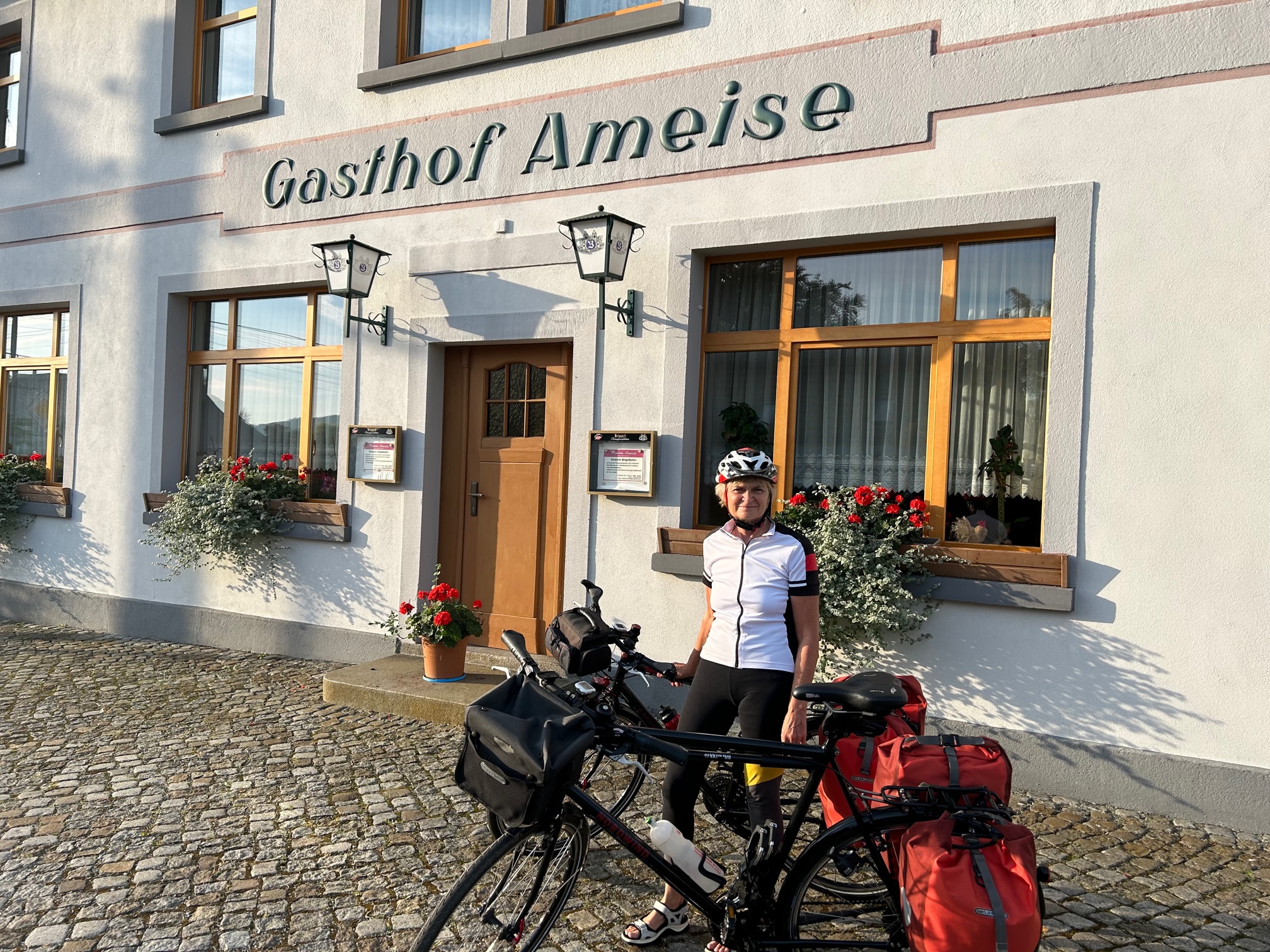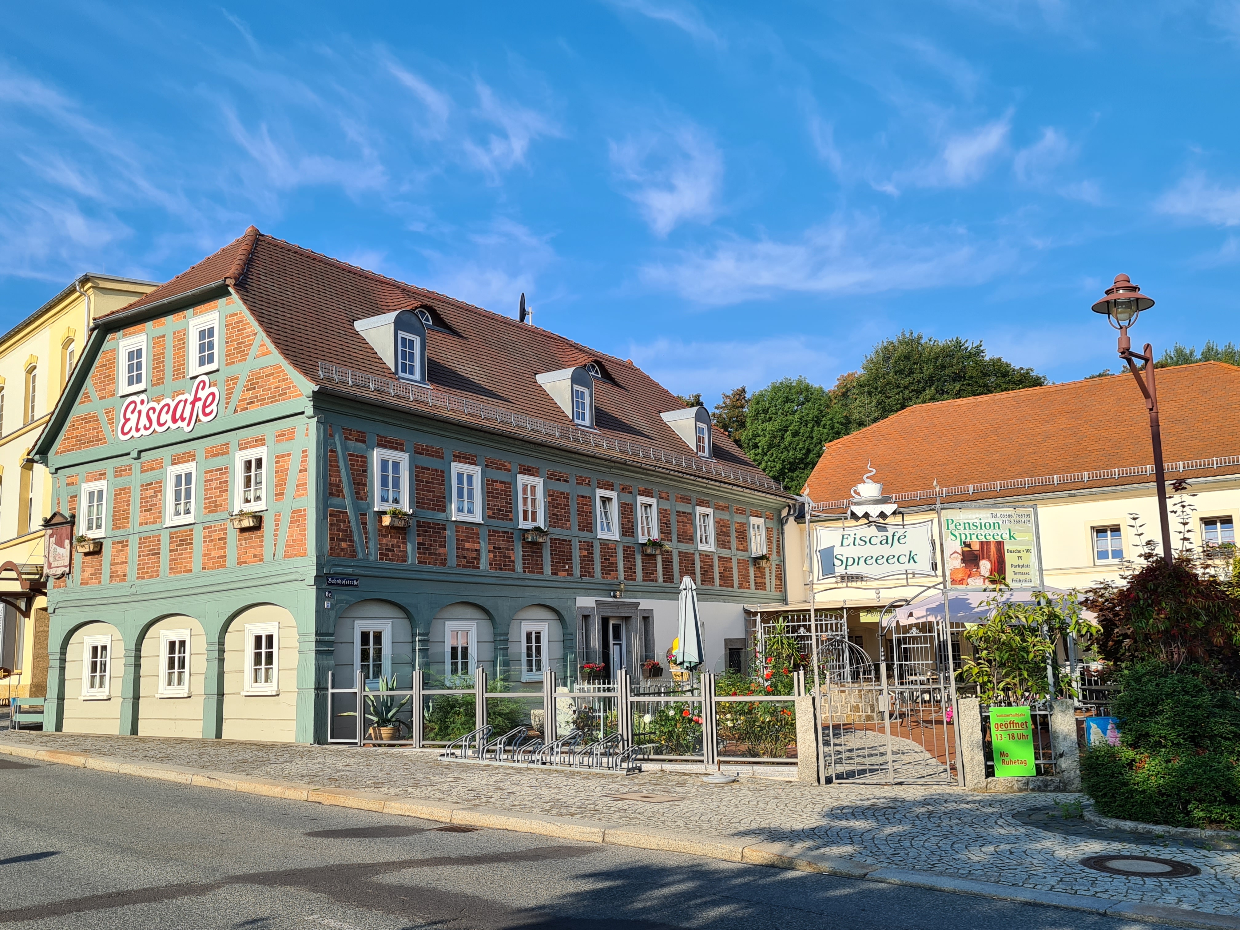 Genau genommen heißt die Stadt Ebersbach-Neugersdorf. Dieses Bild ist für Horst. Er hat hier im Eiscafé Spreeeck in Ebersbach mit Angelika übernachtet. Ein wunderschönes Umgebindehaus. Bei uns hat es leider nicht geklappt mit Übernachten.
