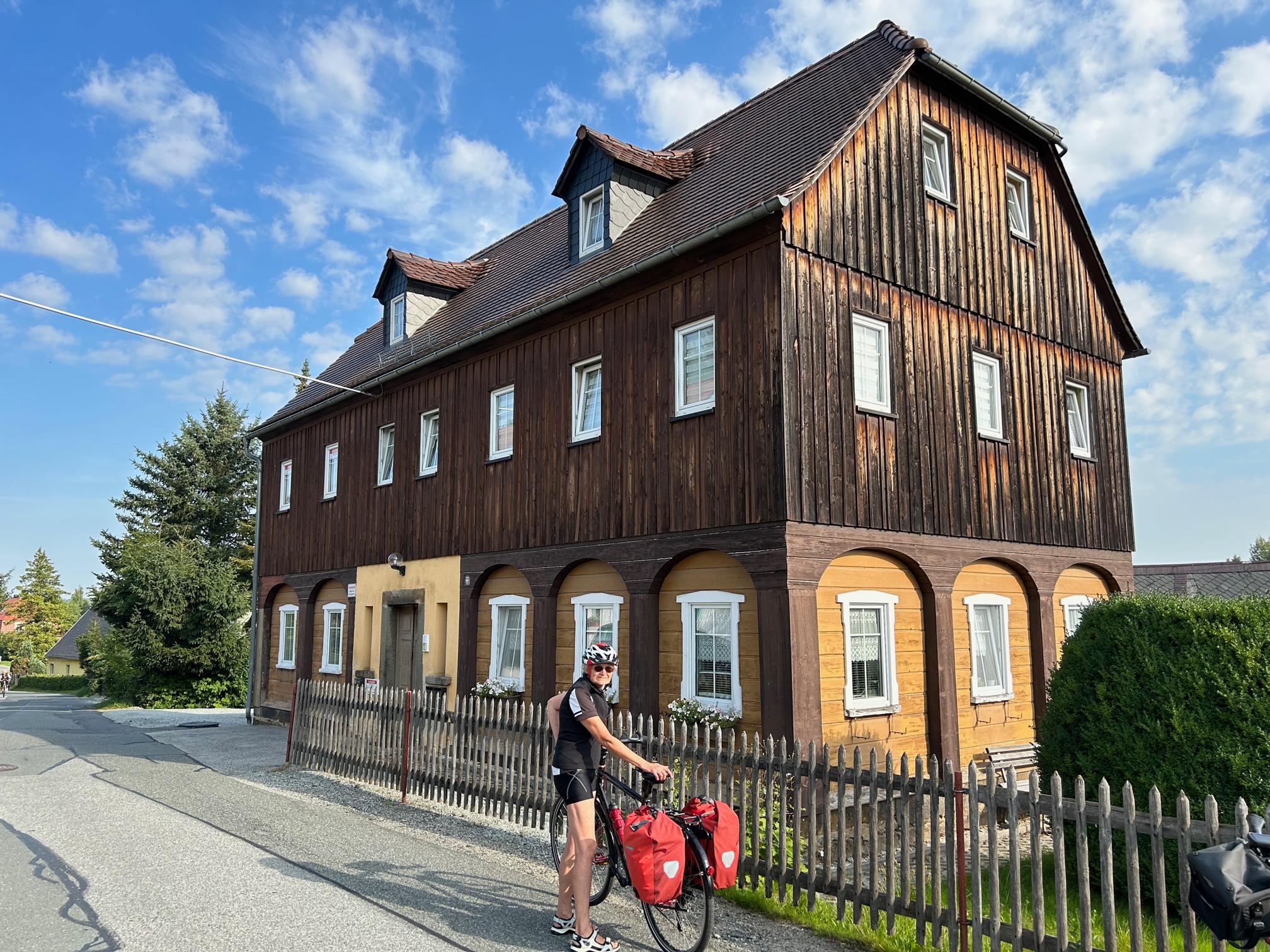 Wir waren in der Ameise in Walddorf. Dort ist jedes dritte Haus ein Umgebindehaus. Das ist eine besondere Bauweise, bei der der Stubenkörper baulich vom Obergeschoss bzw. Dach getrennt ist. Diese Häuser gibt es in Niederschlesien, der Oberlausitz und Nordböhmen. Ich finde es schön, dass so viele erhalten geblieben sind.