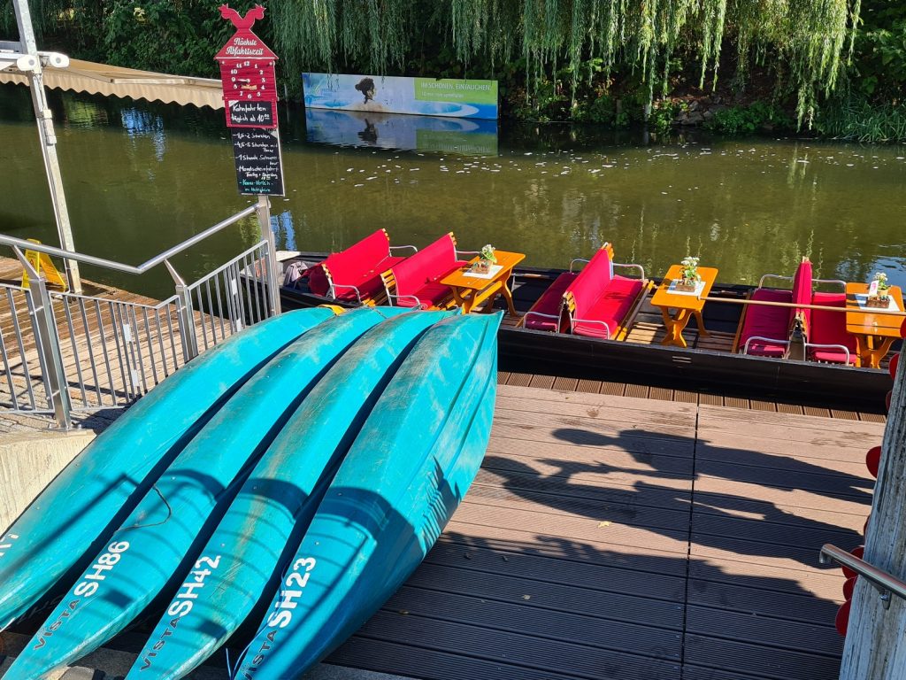 Am Hafen in Lübbenau. Im Hintergrund ist das Schloss zu sehen. Gehörte einst Graf Wilhelm-Friedrich Rochus zu Lynar. Er wusste Bescheid über das Hitler-Attentat und wurde danach hingerichtet.