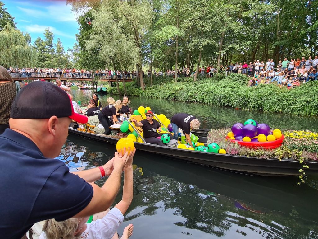 Alles Mögliche wird aus den Kähnen geworfen, Bonbons, Bierflaschen und sogar Bälle.