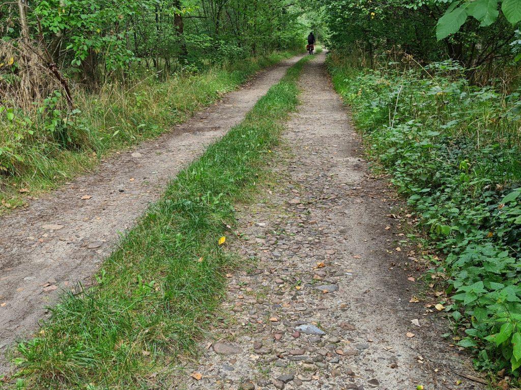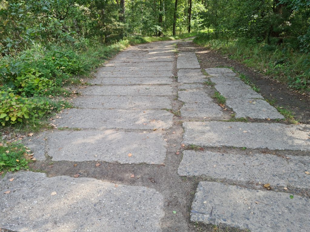 Der Spreeradweg ist oft asphaltiert, aber manche Strecken sind anstrengend zu befahren, wie hier der Betonplattenweg, vermutlich aus DDR-Zeiten.