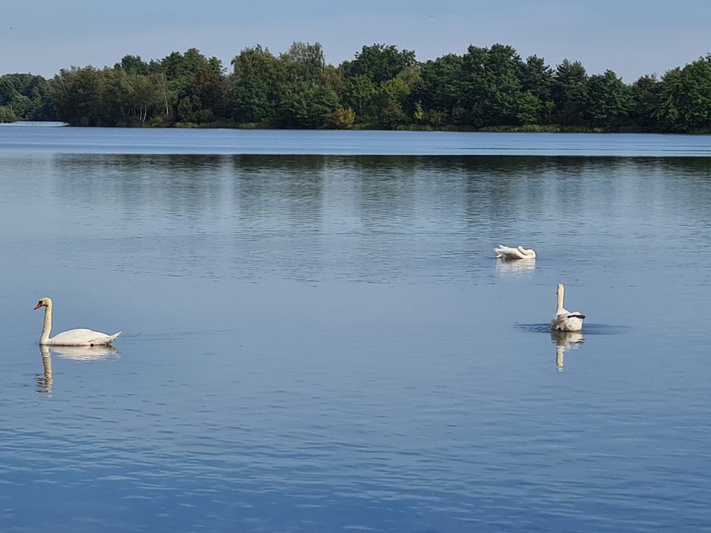 Die Seen bieten vielen Vögeln Rast- oder Brutplätze, z. B. Kranichen. Wir haben aber nur Schwäne und Graureiher gesehen.