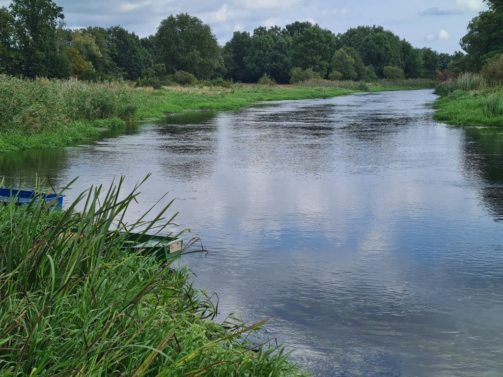 Die Spree. Wobei sie hier eigentlich schon viel breiter wäre, aber es wurde ihr ein Kanal abgezweigt.
