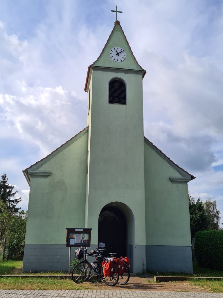 Tipp eines freundlichen Mannes am Weg: Die Kirche in Neu-Hartmannsdorf hat einen Altar aus Wachs. Leider war sie nicht geöffnet.
