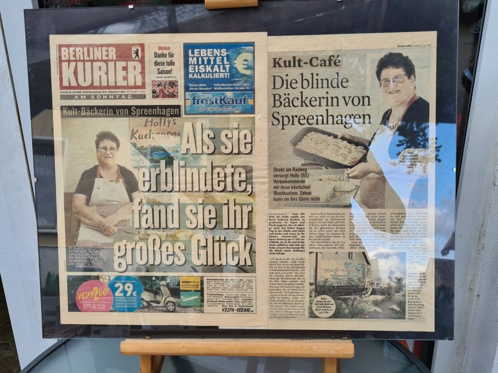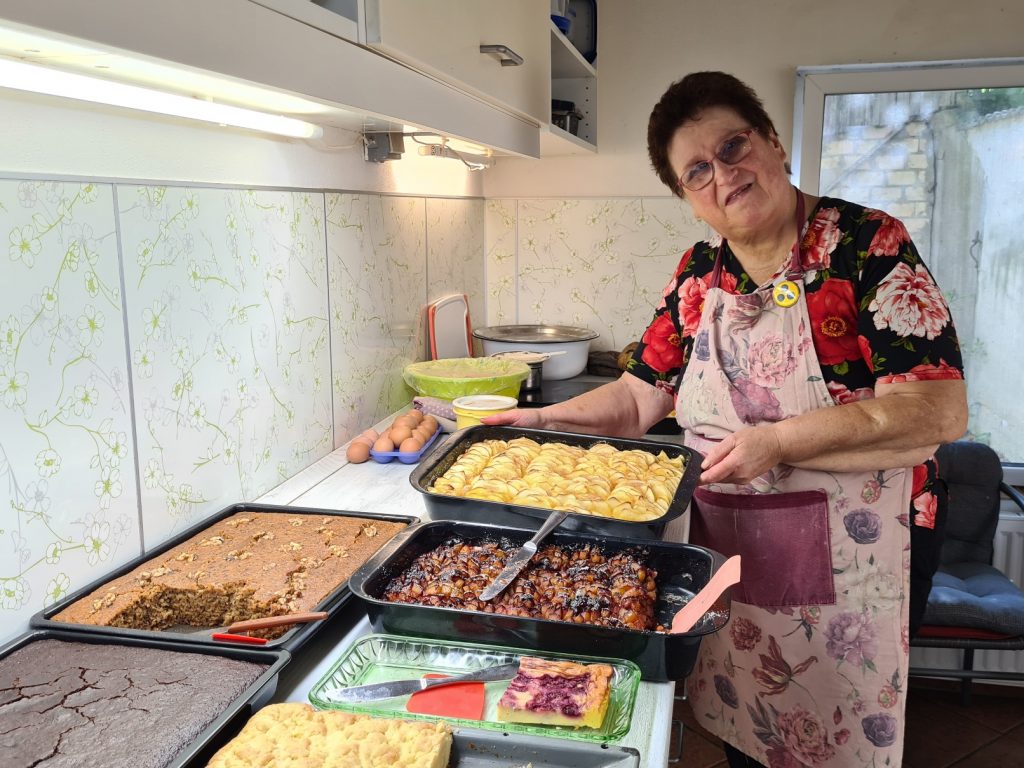 Sie hat heute schon so viele Kuchen gebacken. Ich habe mit ihr gesprochen. Sie ist blind bis auf einen ganz kleinen Punkt, für den sie dankbar ist. Sie sagt, außer backen kann sie nichts mehr tun. Hat mehrere Operationen und Krebs überstanden. Sie sagt, man darf sich nicht unterkriegen lassen. Das ist eine richtige Mut-mach-Geschichte.