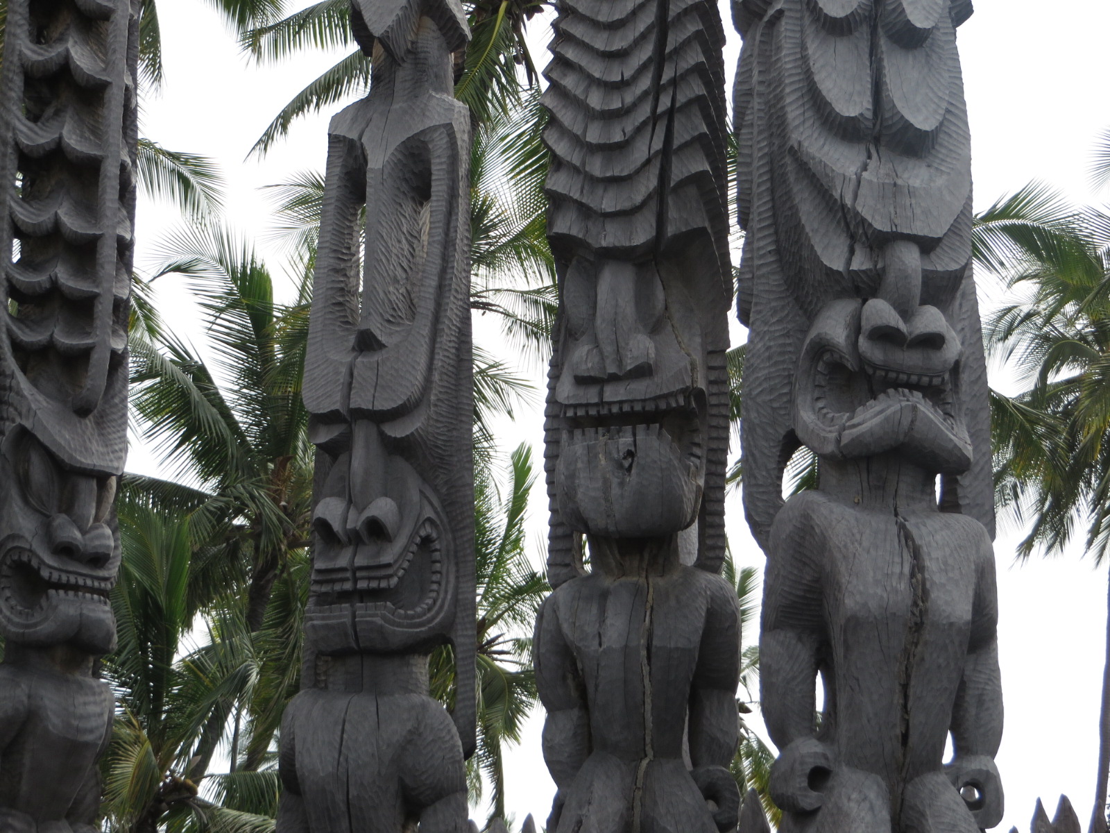 Einzelne heilige Stätten der hawaiianischen Kultur sind erhalten geblieben. Man darf sie besuchen, mit der Bitte, sich respektvoll zu verhalten. Puuhonua o Honaunau ist ein solcher Ort. Es handelt sich um eine Zufluchtsstätte. Wer im Sozialsystem der alten Hawaiianer eine Kapu-Regel (ein Tabu) verletzte, wurde mit dem Tod bestraft. Es gab aber eine Rettung: die Zufluchtsstätte. Wer es schaffte, auf den geheiligten Boden zu gelangen, der musste sich einer Absolutionszeremonie unterziehen. Danach war ihm verziehen und er konnte wieder als normales Mitglied der Gesellschaft leben. Das erinnert mich sehr an unsere Beichte. Tempel und Mausoleum für Häuptlinge Auch das Iao Valley (Iao Tal) auf Maui war bei den alten Hawaiianern…