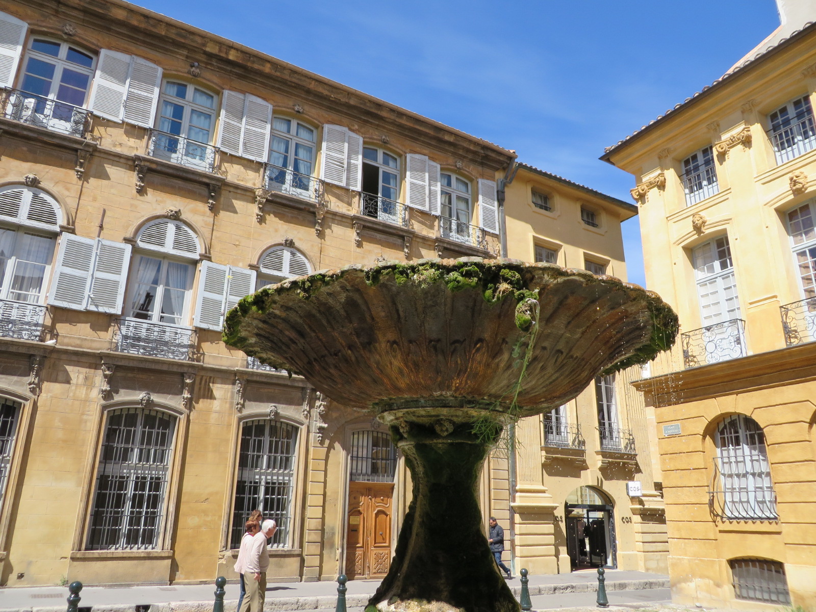 Heute sind wir nach Süden gefahren und haben einen Abstecher nach Aix-en-Provence gemacht. Die prächtigen Häuser erzählen von einer großen Zeit, als Aix-en-Provence die Hauptstadt der Provence war. Die Altstadt besteht aus einem Gewirr von Straßen und Gassen. Es gibt unzählige Cafés und Restaurants. Alle Plätze an der Sonne sind begehrt und besetzt. Die Stadt ist voller junger Menschen, denn Aix-en-Provence ist eine Universitätsstadt. Überall sprudelt Wasser und es gibt herrlich alte Brunnen. Die Prachtstraße Cours Mirabeau wurde im 17. Jhd. angelegt. Vier Reihen Platanen bilden im Sommer ein schattiges Dach und spenden mit den Brunnen angenehme Kühle.