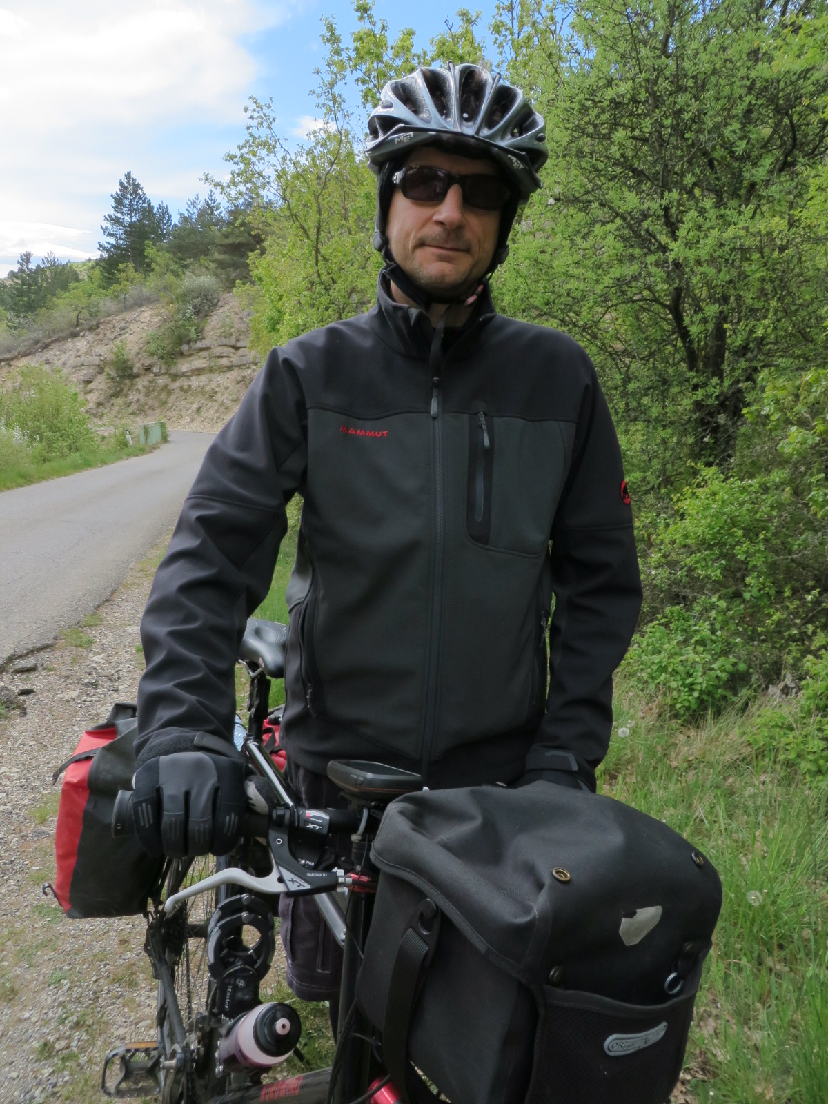Was hat das zu bedeuten, wenn Alex mit Handschuhen fährt (das erste Mal in seinem Leben)? Le mistral! Was hat es zu bedeuten, wenn das Thermometer im Tacho 21’C anzeigt und es fühlt sich an wie höchstens 10’C? Le mistral! Was hat das zu bedeuten, wenn man treten muss, obwohl es bergab geht? Le mistral! Was hat das zu bedeuten, wenn die Wolken plötzlich weggeblasen sind und sich der blaue Himmel zeigt? Le mistral! Der Mistral ist ein kalter Fallwind aus dem Nordwesten. Er bläst uns seit zwei Tagen kräftig entgegen. Wind allein reicht, da brauchen wir nicht auch noch kräftige Anstiege. Wir beschlossen in Apt, auf die Euroveloroute Nr.…